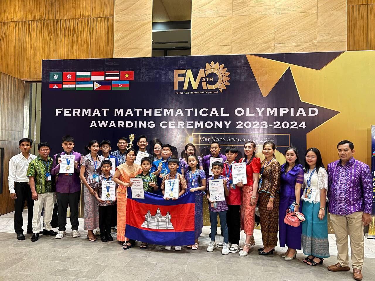 (ភ្នំពេញ)៖ យុវសិស្សកម្ពុជា៧រូប ក្នុងចំណោម១៤រូប ដែលបានទៅចូលរួមប្រឡងគណិតវិទ្យាអន្តរជាតិ FMO វគ្គផ្តាច់ព្រ័តនៅប្រទេសវៀតណាម បាននាំយកពាន និងមេដាយត្រឡប់មកមាតុប្រទេសវិញហើយ បន្ទាប់ពីពួកគេបានទៅចូលប្រឡងកាលពីថ្ងៃទី២០ ខែមករា ឆ្នាំ២០២៤។