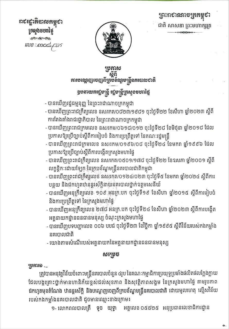 (ភ្នំពេញ)៖ លោកអភិសន្ដិបណ្ឌិត ស សុខា ឧបនាយករដ្ឋមន្ដ្រី រដ្ឋមន្ដ្រីក្រសួងមហាផ្ទៃ បានចេញប្រកាសបណ្ដេញមន្ត្រីនគរបាលចំនួន៤រូប នៅគណៈកម្មាធិការប្រយុទ្ធប្រឆាំងផលិតផលក្លែងក្លាយ ដែលបង្កគ្រោះថ្នាក់មានហានិភ័យខ្ពស់ដល់សុខភាព និងសុវត្ថិភាសង្គម ចេញពីក្របខ័ណ្ឌក្រសួងមហាផ្ទៃ។ នេះបើតាមសេចក្តីសម្រេចរបស់ អភិសន្តិបណ្ឌិត ស សុខា ដែលបណ្តាញព័ត៌មាន Fresh News ទទួលបាននៅថ្ងៃទី២៣ ខែមករានេះ។