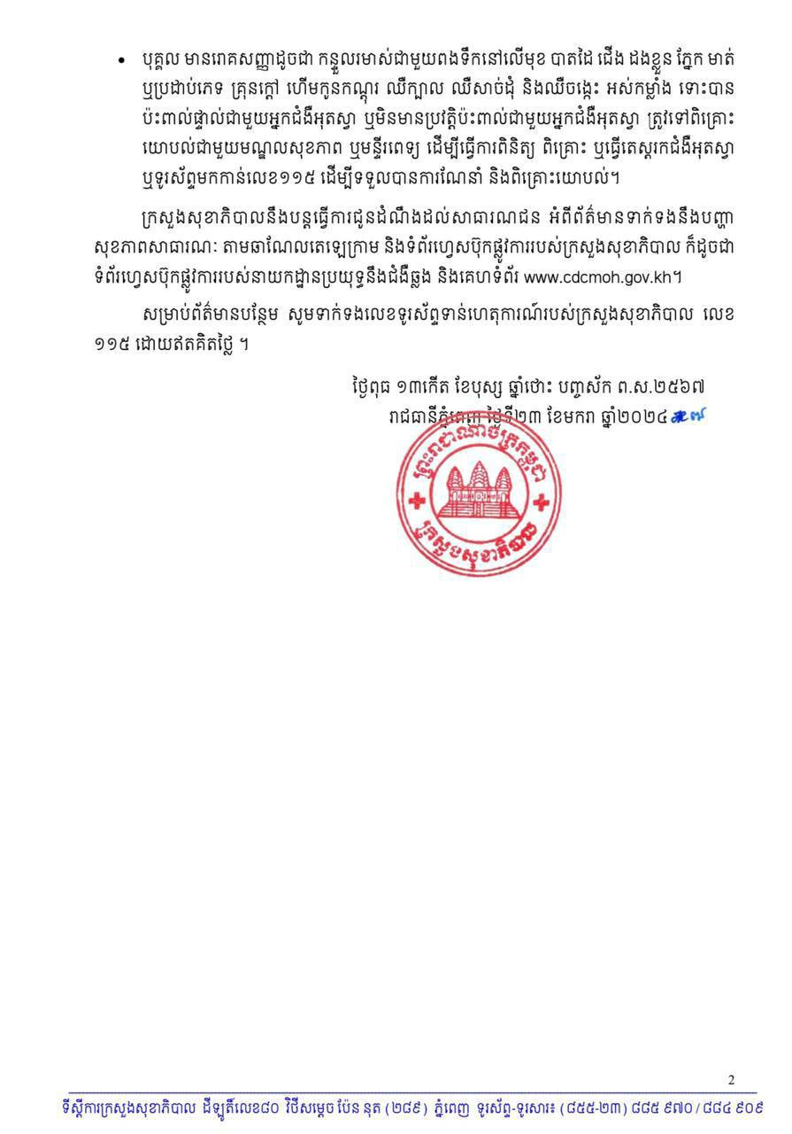 ខាងក្រោមនេះជាសេចក្តីប្រកាសព័ត៌មានរបស់ ក្រសួងសុខាភិបាល៖