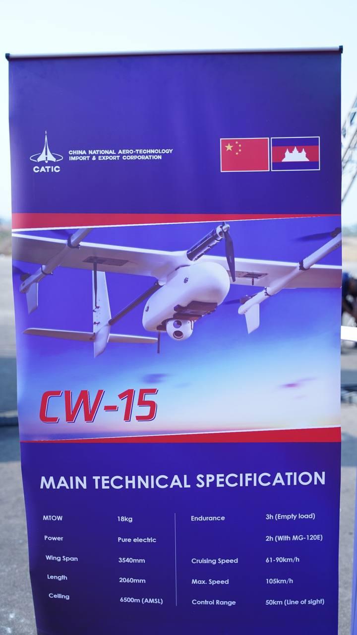 នាយឧត្តមសេនីយ៍ ចៅ ភិរុណ អគ្គនាយកនៃអគ្គនាយកដ្ឋានសម្ភារបច្ចេកទេស នៃក្រសួងការពារជាតិ បានឱ្យដឹងថា គោលបំណងនៃការបង្ហោះដ្រូនធុន CW-15 និង CW-40 របស់ក្រុមហ៊ុនចិន CATIC នេះ គឺដើម្បីបង្ហាញពីលក្ខណៈបច្ចកទេស ប្រសិទ្ធភាពរបស់ដ្រូនដែលបម្រើដល់ការស៊ើបការណ៍ និងកិច្ចការយោធា។