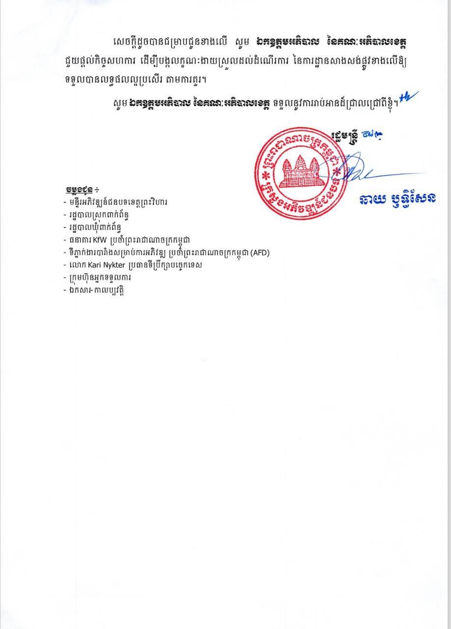 ខាងក្រោមនេះជាលិខិតរបស់ក្រសួងអភិវឌ្ឍន៍ជនបទ៖