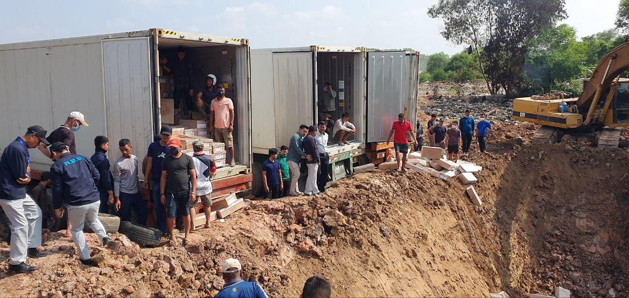 យោងតាមមន្ត្រីជំនាញ បានបញ្ជាក់ប្រាប់ភ្នាក់ងារព័ត៌មាន ​Fresh News ប្រចាំខេត្តស្វាយរៀង បានឱ្យដឹងនៅព្រឹកថ្ងៃទី៣ ខែកុម្ភៈ ឆ្នាំ២០២៤នេះថា «ក្រុមការងារចម្រុះបានចុះត្រួតពិនិត្យទៅលើទំនិញទាំង ៤កុងតឺន័រ ដែលផ្ទុកជើងមាន់នេះ ដោយពិនិត្យឃើញថាពុំមានឯកសារគ្រប់គ្រាន់ទើប នៅថ្ងៃទី៣ កុម្ភៈនេះ បាននាំទំនិញទាំងនេះយកមកទីលានចាក់សំរាម ដើម្បីត្រៀមដុតកម្ទេចចោលនៅថ្ងៃទី៤ ខែកុម្ភៈ ឆ្នាំ២០២៤»។