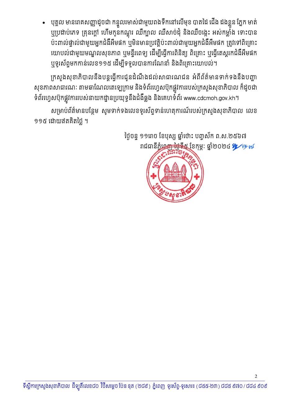 ខាងក្រោមនេះជាសេចក្តីប្រកាសព័ត៌មានរបស់ ក្រសួងសុខាភិបាល៖