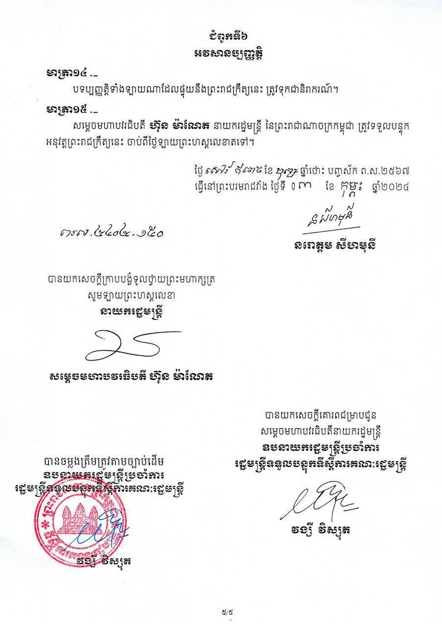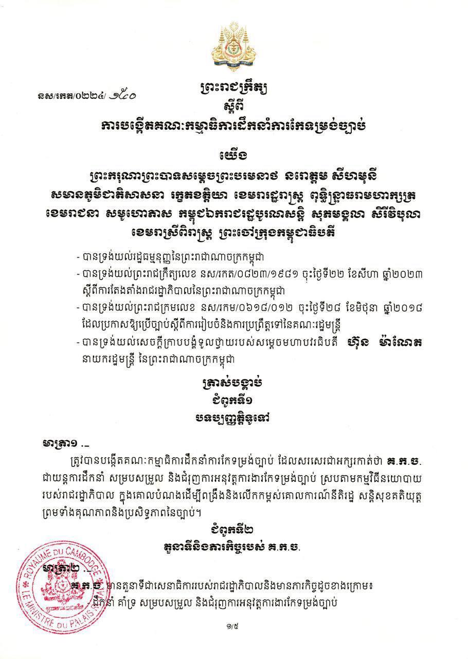 ព្រះមហាក្សត្រចេញព្រះរាជក្រឹត្យ បង្កើតគណៈកម្មាធិការដឹកនាំការកែទម្រង់ច្បាប់
