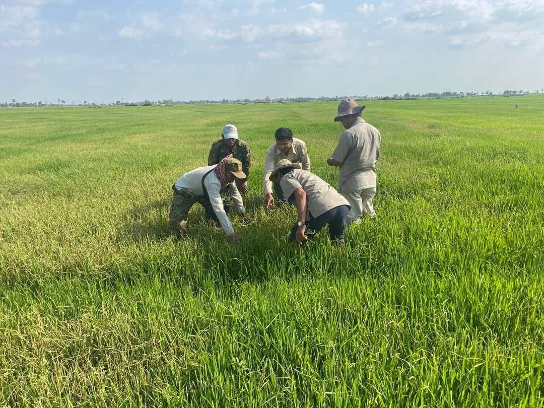 មន្ត្រីជំនាញចុះត្រួតពិនិត្យស្ថានភាពស្រូវ ដែលរងការបំផ្លាញពីសត្វមមាចត្នោត ដង្កូវមូរស្លឹក និងមុស្សផ្លុងជាង៤០ហិកតា នៅស្រុកស្វាយអន្ទរ ខេត្តព្រវែង