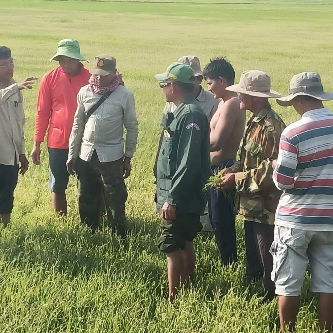 ការចុះពិនិត្យស្រូវប្រាំងដែលរងការបំផ្លាញ់ដោយសត្វល្អិតនេះ មានការចូលរួមពីក្រុមប្រឹក្សាឃុំដំរីពួន និងប្រជាកសិករដែលមានស្រែបំផ្លាញពីសត្វល្អិតចង្រៃ កាលពីថ្ងៃទី២២ ខែកុម្ភៈ ឆ្នាំ២០២៤។