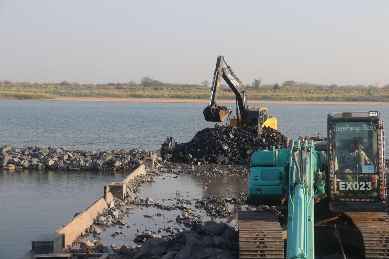 អាជ្ញាធរខេត្តកំពង់ចាម ចុះទៅពិនិត្យមើលផ្ទាល់ការងារកាយថ្មចេញពីទន្លេមេគង្គវិញ ខណៈអ្នកចាក់ចូលអះអាងថា យ៉ាងយូរជាង១០ថ្ងៃ ក្រុមការងារនឹងកាយយកថ្មចេញពីទន្លេឲ្យអស់