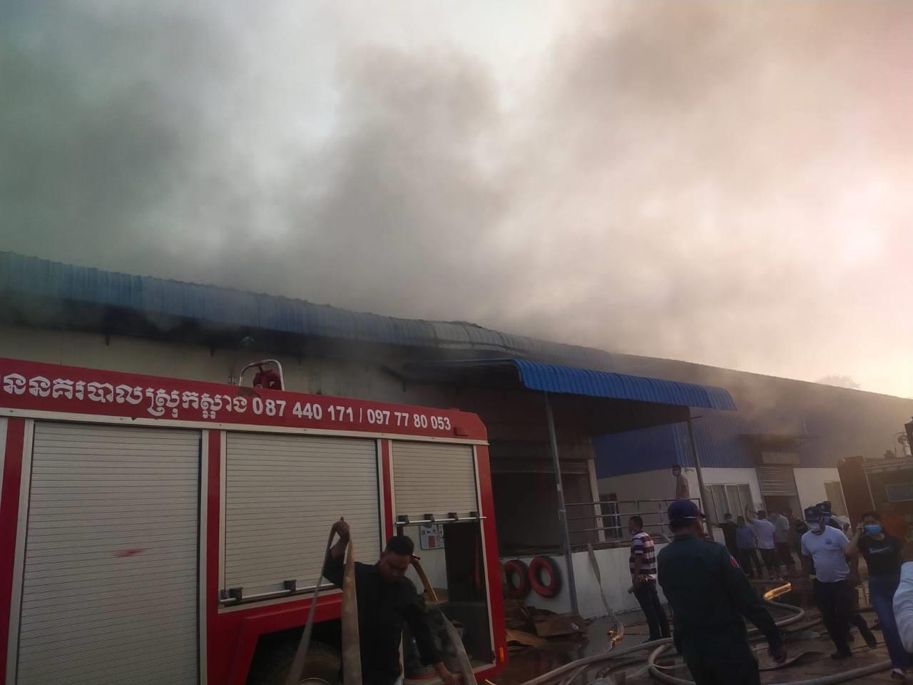 អគ្គិភ័យឆេះរោងចក្រមួយកន្លែង នៅស្រុកស្អាង ខេត្តកណ្ដាល, សមត្ថកិច្ចប្រើប្រាស់ទឹកអស់២៣ឡាន ទើបគ្រប់គ្រងបានទាំងស្រុង