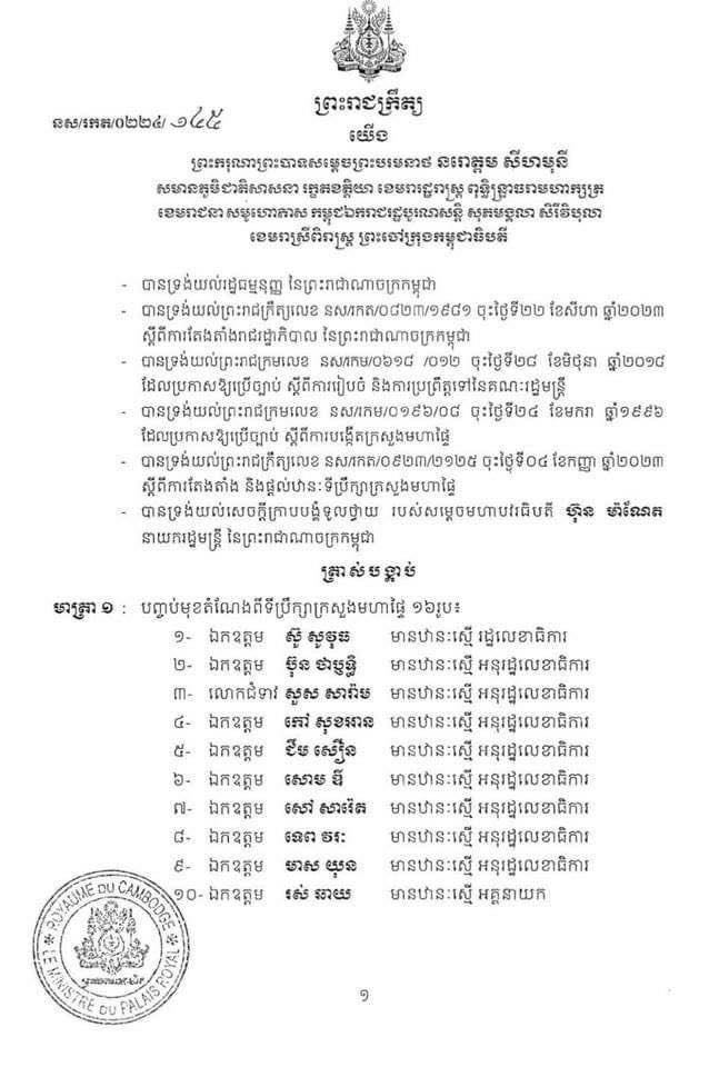 ទីប្រឹក្សា និងជំនួយការក្រសួងមហាផ្ទៃ សរុបចំនួន៤១នាក់ ត្រូវបានបញ្ចប់មុខតំណែង