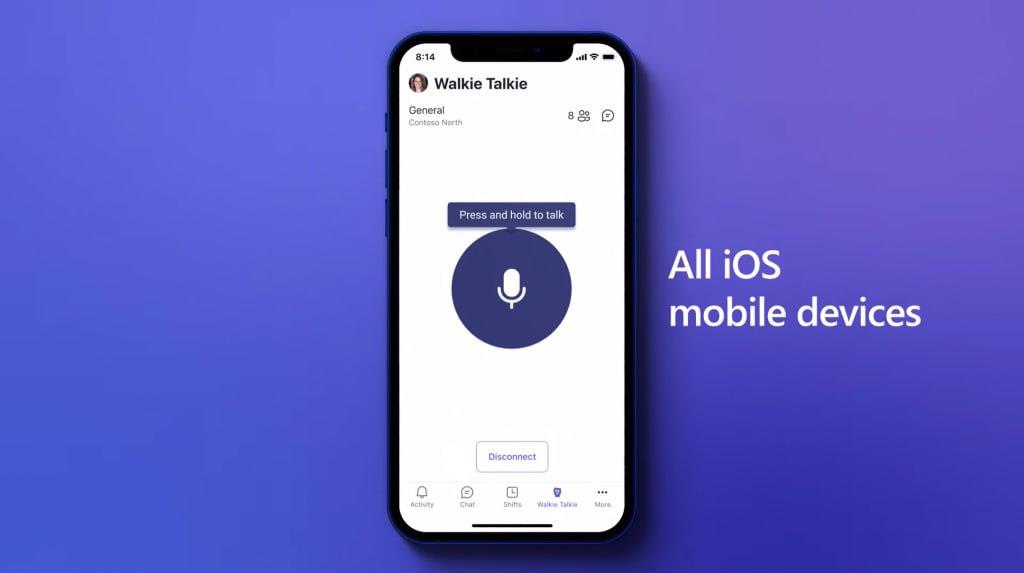 ដោយឡែកទទួលបានរបាយការណ៍ថ្មីមកថា Microsoft Team កំពុងធ្វើការលើមុខងារថ្មី ដែលត្រៀមនឹងបញ្ចេញទៅកាន់ iOS ដំបូងគេនៅ ២ខែខាងមុខនេះ ខណៈមុខងារ walkie-talkie នោះត្រូវបាន Microsoft បង្ហើបឱ្យដឹងថា វាមានសមត្ថភាពដូចទៅនឹងអាយកូមអ៊ីចឹង។ មានន័យថា អ្នកប្រើប្រាស់អាចបញ្ចូនសំឡេងទៅកាន់ដៃគូម្ខាងទៀតដោយគ្រាន់តែប្រើប្រាស់កម្មវិធី Microsoft Teams តែប៉ុណ្ណោះ សំឡេងនោះនឹងលឺទៅដល់ដៃគូម្ខាងទៀត។ Microsoft បញ្ជាក់ថា អាចប្រើបានសម្រាប់តែសមាជិកក្នុងក្រុមតែប៉ុណ្ណោះ ហើយកម្មវិធីនេះដំណើរកាទៅបានលុះត្រាតែកំពុងភ្ជាប់អ៊ីនធឺណិត។