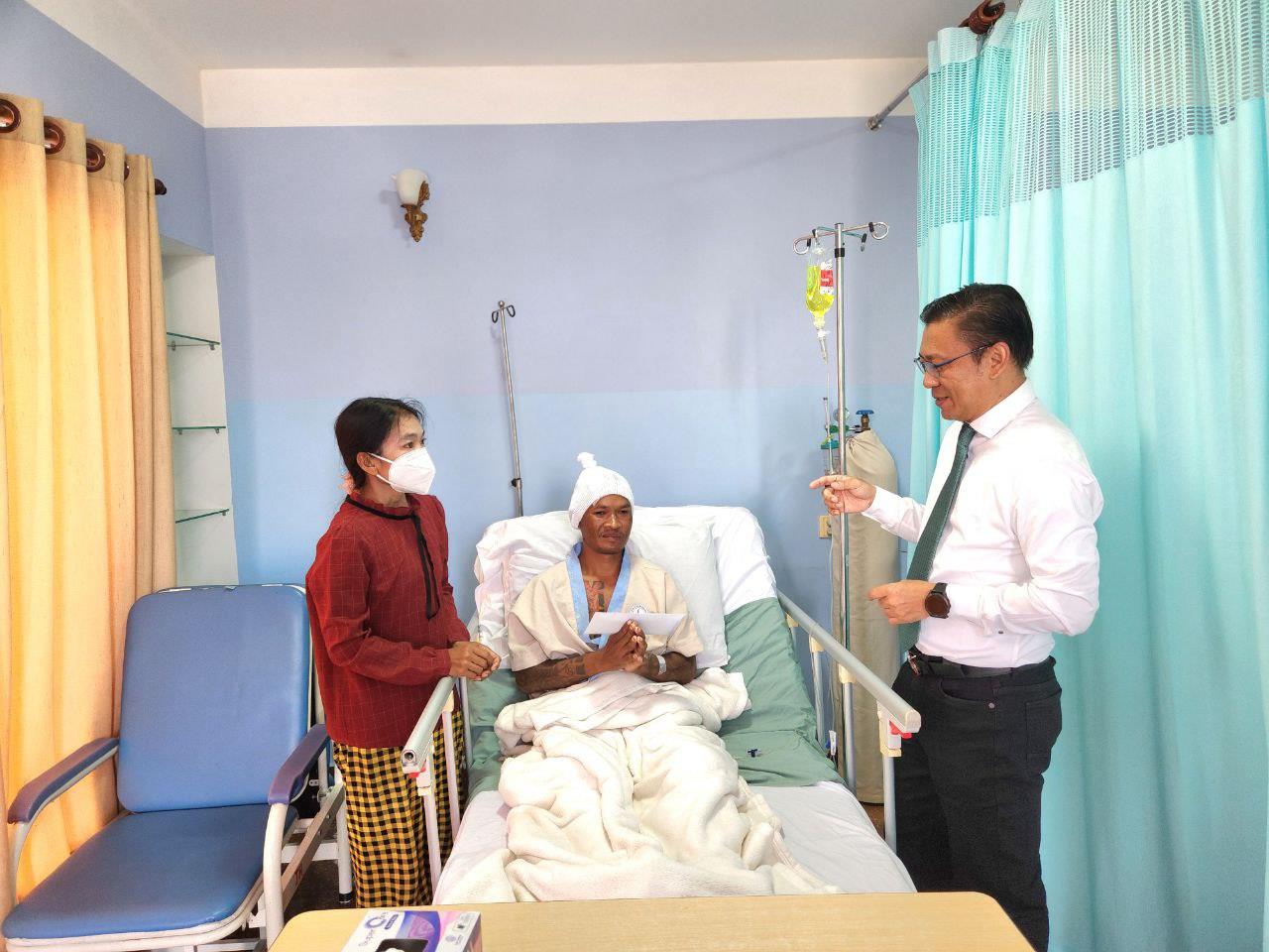 បុរសជាងសំណង់នេះមានឈ្មោះ ម៉ន រ៉ាវុធ អាយុ ៣៤ឆ្នាំ មានគ្រោះថ្នាក់ធ្លាក់ពីលើអន្ទាកម្ពស់ ៧ម៉ែត្រ ខណៈពេលកំពុងធ្វើការងារជាកម្មករសំណង់។ បច្ចុប្បន្ន បុរសរងគ្រោះមានអាការៈធូរស្បើយ ជាមួយនឹងអារម្មណ៍រំភើបរីករាយ ព្រមទាំងអរគុណជាអនេកចំពោះសម្តេចធិបតី ហ៊ុន ម៉ាណែត និងលោកជំទាវបណ្ឌិត។