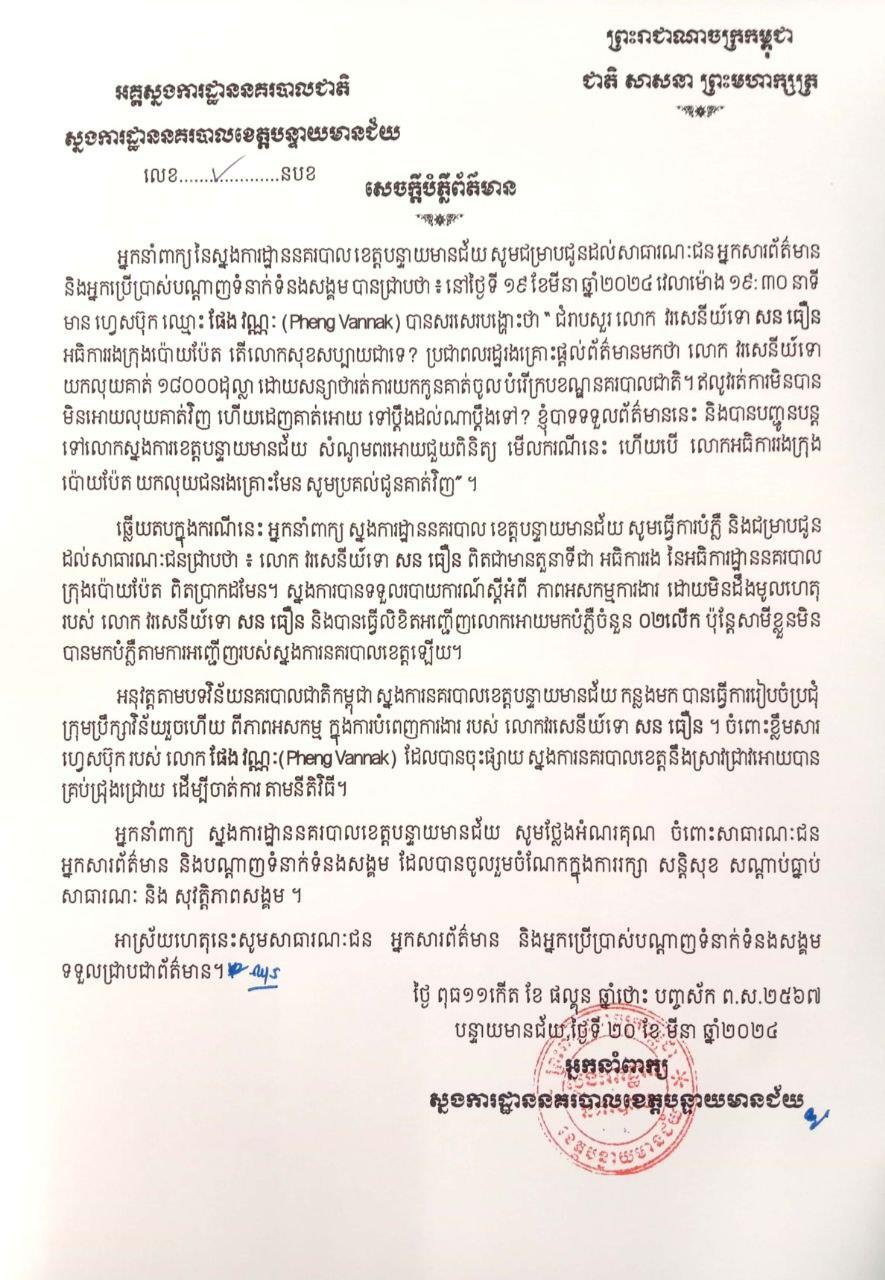 បើតាមអាជ្ញាធរ ការចុះផ្សាយតាមបណ្តាញសង្គមពិតជាធ្វើឲ្យមានការយល់ច្រឡំពីមហាជន ហើយអាជ្ញាធរសូមបដិសេធទាំងស្រុង៕ ផ្តល់សិទ្ធិដោយ៖ Fresh News
