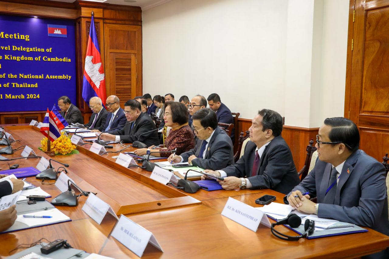 (ភ្នំពេញ)៖ ប្រធានរដ្ឋសភានៃប្រទេសថៃ សំណូមពរឱ្យរដ្ឋសភាប្រទេសទាំងពីរ មានអនុស្សរណៈយោគយល់គ្នា ដូចរដ្ឋសភាកម្ពុជា មានជាមួយប្រទេសវៀតណាម និងប្រទេសផ្សេងៗទៀត ដើម្បីឱ្យកិច្ចសហប្រតិបត្តិការនៃសភាប្រទេសទាំងពីកាន់តែល្អប្រសើរនិងគ្រប់ជ្រុងជ្រោយថែមទៀត។ ការស្នើសុំនេះខណៈលោក វ៉ាន់មូហាម៉ាត់ណ មៈថា ប្រធានរដ្ឋសភាថៃ បានចូលជួបសម្តែងការគួរសម និងជំនួបពិភាក្សាទ្វេភាគីជាមួយ លោកកិត្តិសេដ្ឋាបណ្ឌិត ជាម យៀប ប្រធានរដ្ឋសភាស្តីទីកម្ពុជា នាព្រឹកថ្ងៃទី២១ ខែមីនា ឆ្នាំ២០២៤នៅវិមានសន្តិភាព។