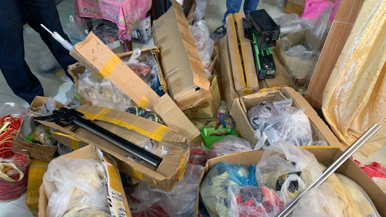 លោកឧត្តមសេនីយ៍ឯក ជា ពៅ អគ្គស្នងការរងនគរបាលជាតិ និងជាប្រធានក្រុមការងារ Hotline Scam 24/7 បានឱ្យដឹងថា ប្រតិបត្តិការនេះសមត្ថកិច្ចជំនាញ បានរកឃើញ និងដកហូតសម្ហារៈពាក់ព័ន្ធដែលជាគ្រឿងបង្គុំអាវុធកែច្នៃមួយចំនួន រួមមាន៖ កាំភ្លើង (អាវុធកែច្នៃ), ជំពាម, ខ្សែកៅស៊ូ, ឧបករណ៍គ្រឿងបង្គុំ និងគ្រាប់ដែក ចំនួន ០៤ ប៉ាវតូច។ល។