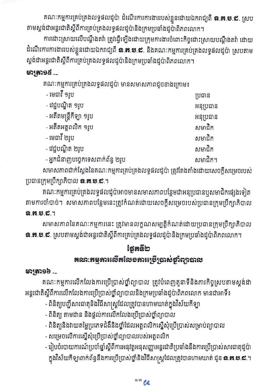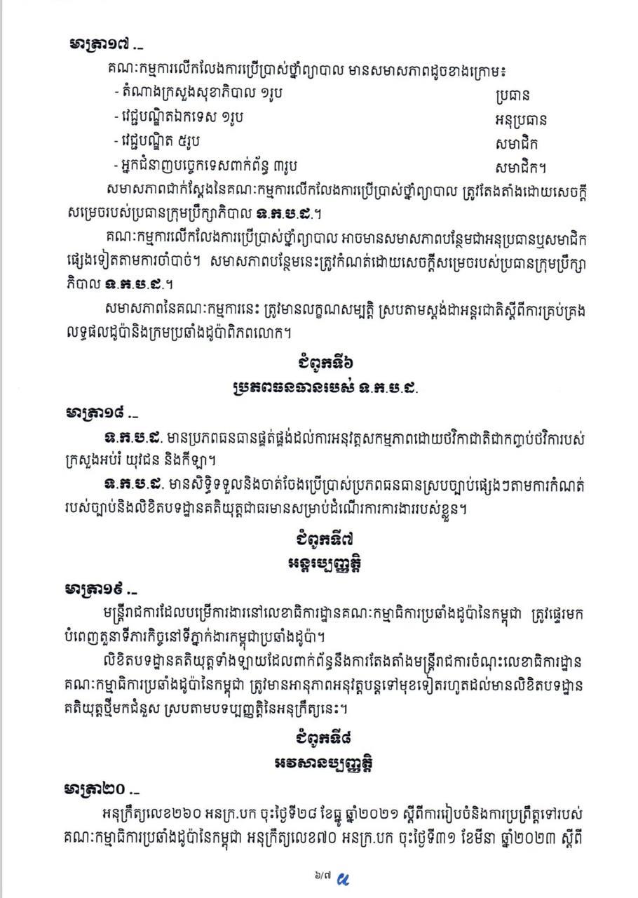 អនុក្រឹត្យរបស់សម្ដេចមហាបវរធិបតី ហ៊ុន ម៉ាណែត នាយករដ្ឋមន្ដ្រីនៃកម្ពុជា ស្ដីពីការបង្កើតទីភ្នាក់ងារកម្ពុជាប្រឆាំងដូប៉ានេះ បានសម្រេចកែសម្រួលថ្មី ដោយអនុលោមតាមក្រមប្រឆាំងដូប៉ាពិភពលោក និងបទប្បញ្ញត្តិផ្សេងៗ ពាក់ព័ន្ធនឹងការប្រឆាំងដូប៉ាក្នុងវិស័យកីឡា នៃទីភ្នាក់ងារប្រឆាំងដូប៉ាពិភពលោក (WADA) ដើម្បីចេញឲ្យអនុវត្តចាប់ពីពេលនេះតទៅ។