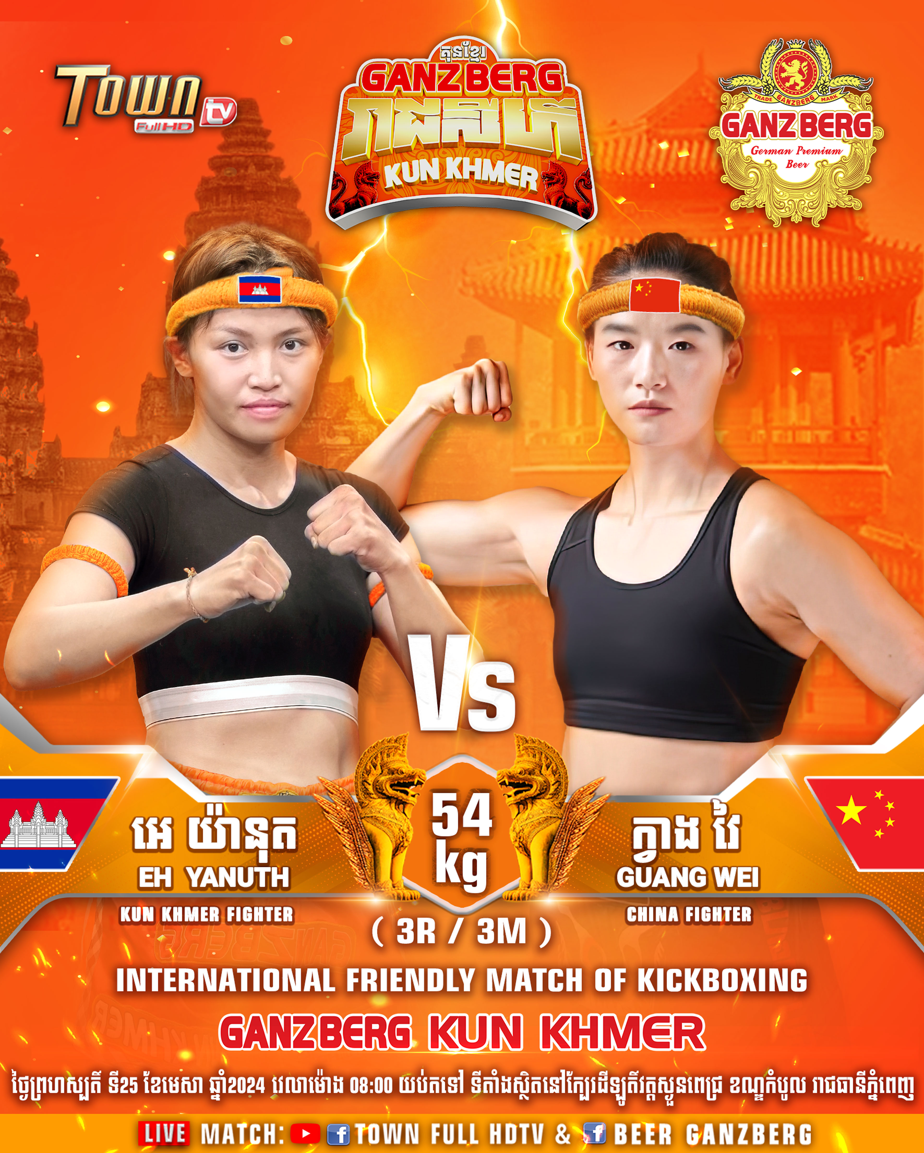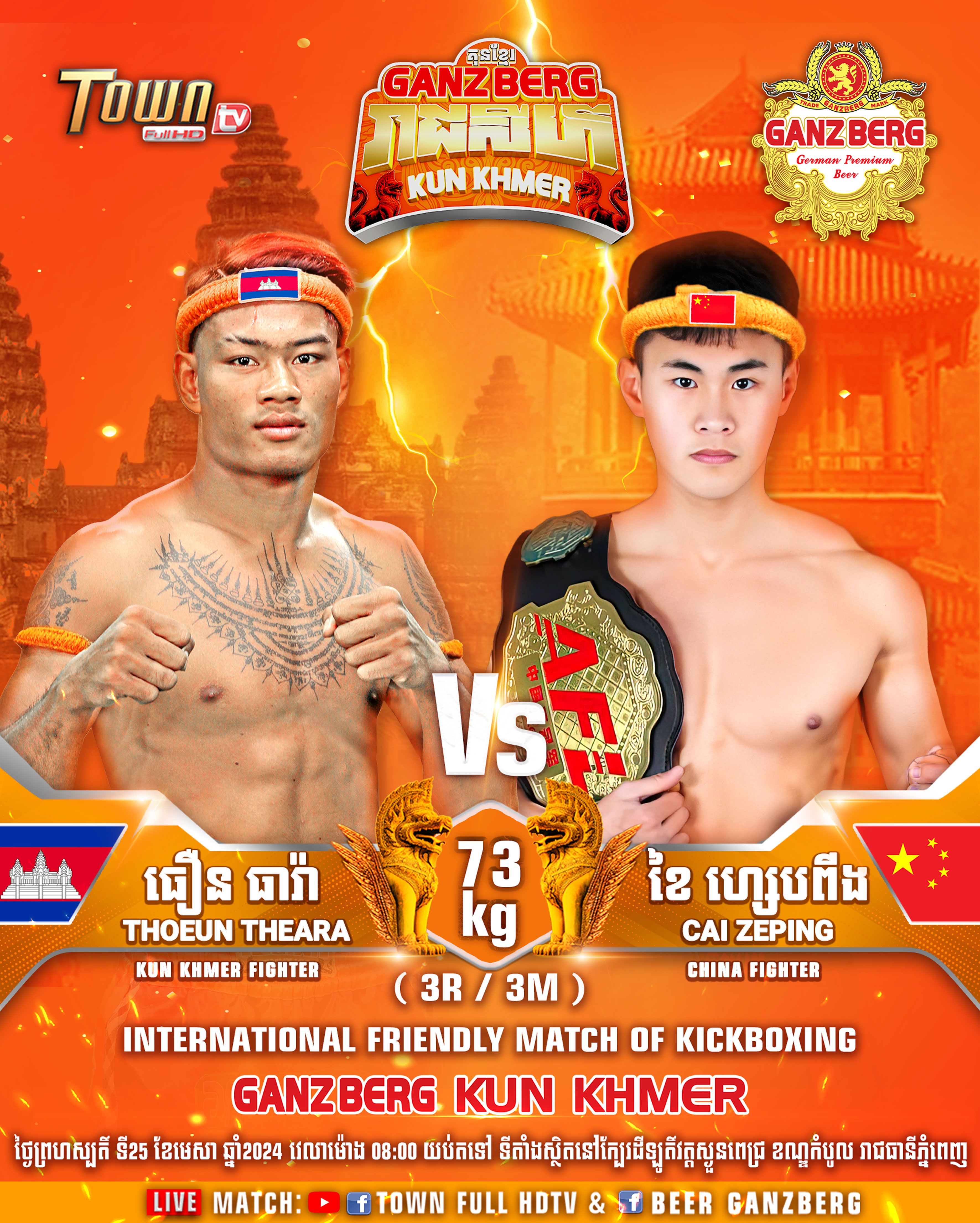មហាព្រឹត្តិការណ៍នេះប្រមូលផ្ដុំទៅដោយកំពូលកីឡាករលំដាប់កំពូលនៅក្នុងប្រទេសដូចជាព្រឹត្តិការណ៍ទី១ ១. កីឡាករ ធឿន ធារ៉ា ២. រឿន សោភ័ណ្ឌ ៣. ពេជ្រ សម្បត្តិ ៤. ជ័រ ពៅ ៥. ពេជ្រ ប៊ុនសិទ្ធ និង កីឡាការនី អេ យ៉ានុត និងទទួលស្វាគមន៍កីឡាករលំដាប់កំពូលមកពីប្រទេស ជប៉ុន និងប្រទេសចិនក្នុងកម្មវិធី GANZBERG KUN KHMER ASIA CHAMPION នាថ្ងៃទី២៥ ខែមេសា នៅលើទឹកដីខណ្ឌកំបូល។