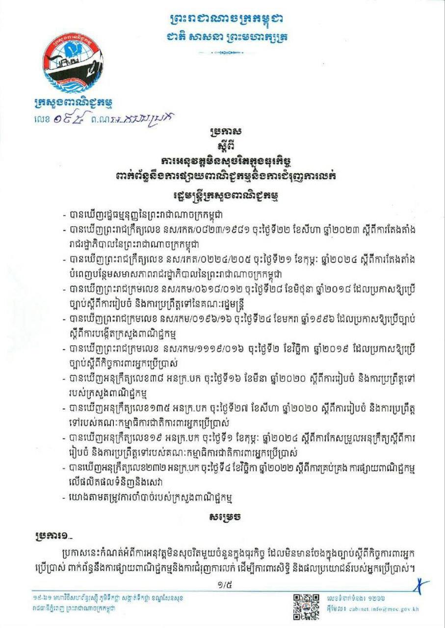 ក្រសួងពាណិជ្ជកម្ម កំណត់ឱ្យអ្នកផ្គត់ផ្គង់ទំនិញ និងសេវា ត្រូវបិទស្លាកថ្លៃជាប្រាក់រៀល លើគ្រប់មុខផលិតផលទំនិញដែលដាក់តាំងលក់