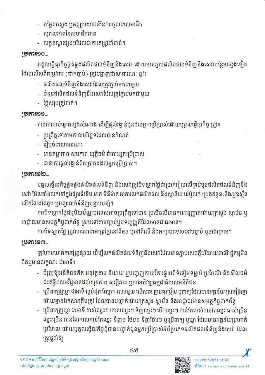 ក្រសួងបញ្ជាក់ថា ការបិទស្លាកថ្លៃជារូបិយប័ណ្ណបរទេស អាចប្រព្រឹត្តទៅបាន ប្រសិនបើមានការអនុញ្ញាតដោយក្រសួង ស្ថាប័ន ឬអាជ្ញាធរមានសមត្ថកិច្ចពាក់ព័ន្ធ ស្របទៅតាមច្បាប់ ឬបទប្បញ្ញតិដែលមានជាធរមាន។ ចំពោះការបិទស្លាកថ្លៃត្រូវសរសេរជាអក្សរខ្មែរ ពីមុខ ឬនៅពីលើ និងអក្សរបរទេសនៅបន្ទាប់ ឬខាងក្រោម៕ ផ្តល់សិទ្ធិដោយ៖ freshnews