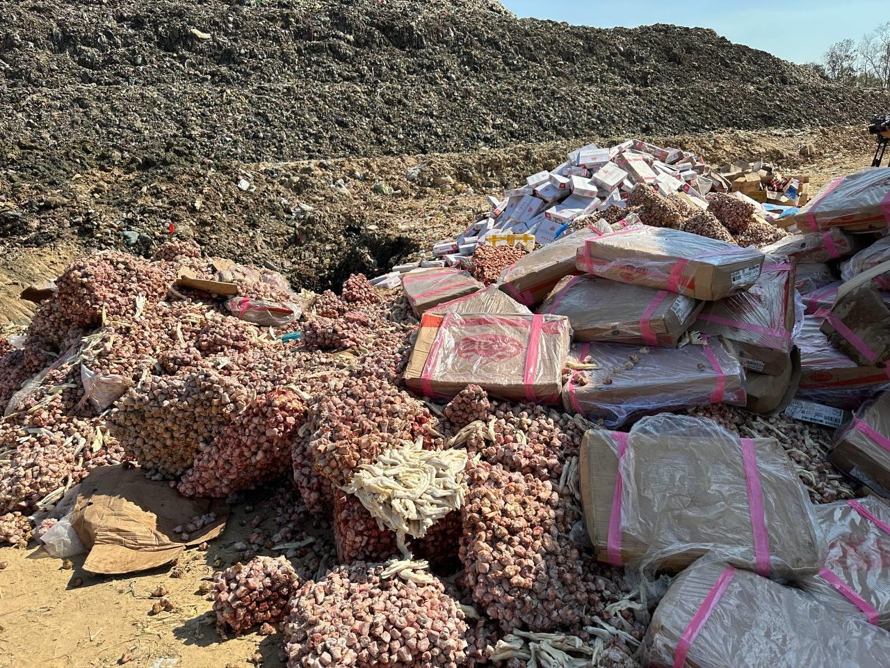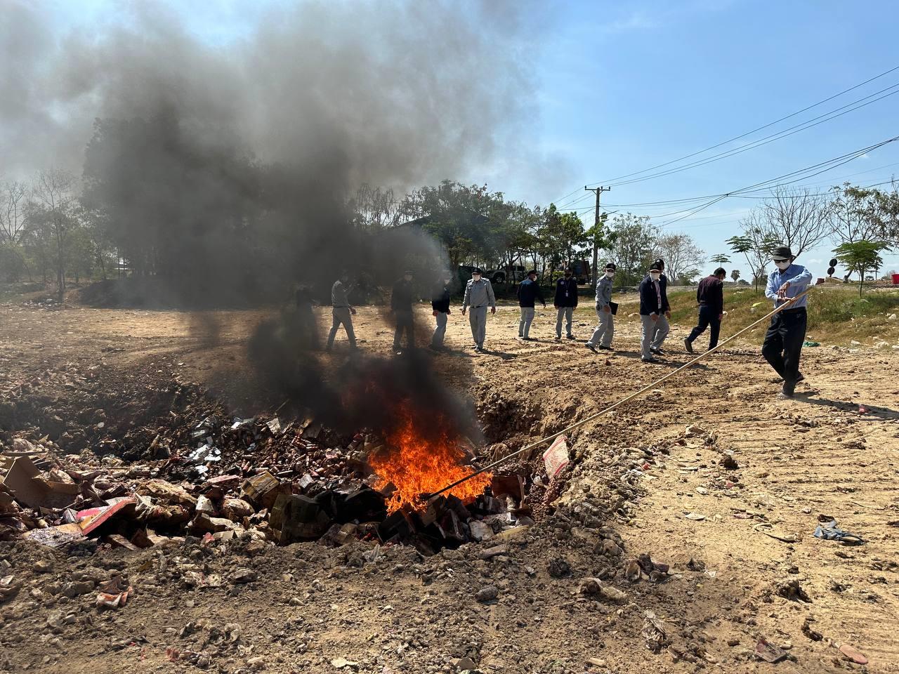 សាច់បង្កក និងគ្រឿងឧបភោគបរិភោគខូចគុណភាពជាង១៧តោន ត្រូវបានដុតបំផ្លាញចោល