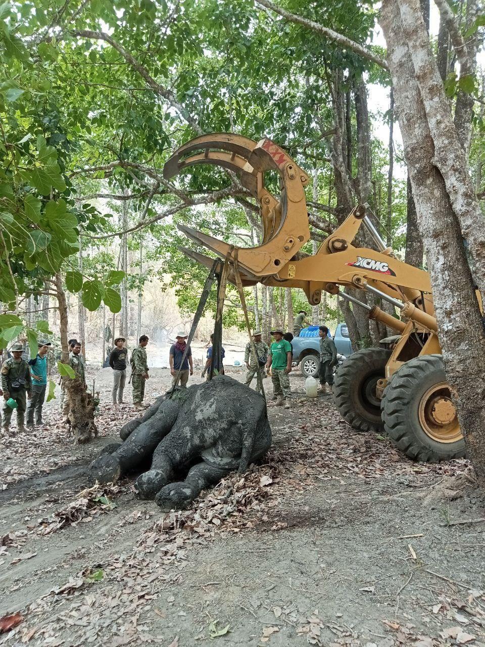 លោក ថង សាវុន អភិបាលខេត្តមណ្ឌលគិរី បានឲ្យដឹងនៅព្រឹកថ្ងៃទី០៣ ខែឧសភា ឆ្នាំ២០២៤នេះថា ក្រោយប្រទះឃើញដំរីជាប់ក្នុងផុងក្នុងភួកទឹកអូរគ្រាក់ មន្ដ្រីជំនាញបរិស្ថាន ឧទ្យានុរក្ស, អង្គការ WWF, ក្រុមហ៊ុនរ៉ូយ៉ាល់គ្រុប និងអាជ្ញាធរស្រុក បានសហការគ្នាអូសដំរីរងគ្រោះចេញពីភួក។