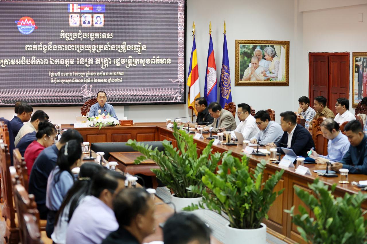 (ភ្នំពេញ)៖ គម្រោងដំណើរការងារធ្វើតេស្តរកសារធាតុញៀនក្នុងទឹកមូត្រ ដោយប្រើឧបករណ៍តេស្តរហ័ស ចំពោះថ្នាក់ដឹកនាំ មន្ត្រីរាជការ មន្ត្រីជាប់កិច្ចសន្យារបស់ក្រសួងព័ត៌មាន បានលើកមកពិភាក្សាក្នុងឱកាស នៃកិច្ចប្រជុំបច្ចេកទេសពាក់ព័ន្ធនឹងការងារប្រយុទ្ធប្រឆាំងគ្រឿងញៀន នៅព្រឹកថ្ងៃទី៤ ខែឧសភា ឆ្នាំ២០២៤ នាសាលប្រជុំព្រះវិហារ ក្រោមអធិបតីភាពលោក នេត្រ ភក្ត្រា រដ្ឋមន្ត្រីក្រសួងព័ត៌មាន និងមានការអញ្ជើញ ចូលរួមពីថ្នាក់ដឹកនាំ មន្ត្រីជំនាញ បច្ចេកទេស នៃអាជ្ញាធរជាតិប្រយុទ្ធប្រឆាំងគ្រឿងញៀន ដែលនឹងមកជួយបង្ហាត់បង្រៀនពន្យល់ពីកិច្ចការងារមួយចំនួនដល់មន្ត្រីបង្គោល ក្រសួងព័ត៌មាន ដើម្បីឱ្យអង្គភាពនីមួយៗអាចចេះធ្វើតេស្តទឹក មូត្រដោយខ្លួនឯង និងបានយល់ដឹងពីរបៀបនៃដំណើរការធ្វើតេស្តរកសារធាតុញៀន។
