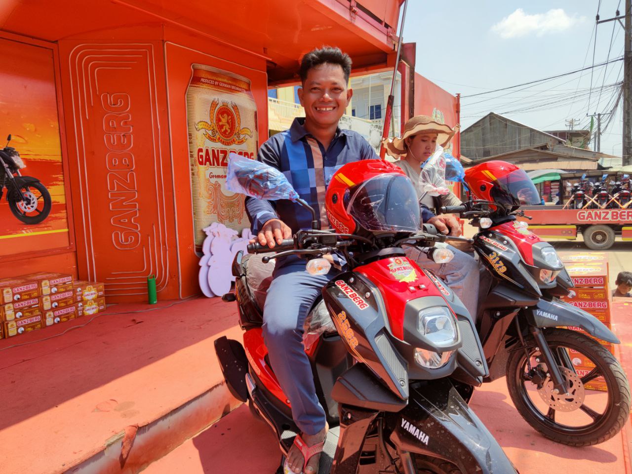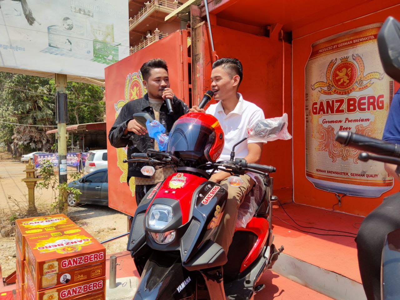 ដែលពួកគាត់បានទិញស្រាបៀរ GANZBERG មកពិសារាល់ការជួបក្នុងគ្រួសារ ពួកម៉ាក់ល្អ និង ក្រុមការងារ ក្រោយពេលសម្រាកពីការងារប្រចាំថ្ងៃ ហើយបានឈ្នះរង្វាន់ម៉ូតូម្នាក់ ១គ្រឿង ពីការគាស់កំប៉ុងស្រាបៀរ GANZBERG។ ស្រាបៀរ GANZBERG ផលិតដោយអ្នកជំនាញអាល្លឺម៉ង់ ឆ្ងាញ់កម្រិតពិភពលោក ថែមទាំងឈ្នះរង្វាន់យក្សរថយន្តថ្មី Ford Ranger 300គ្រឿង និងម៉ូតូ 4,000គ្រឿង ព្រម ទាំងឈ្នះរង្វាន់ដុល្លារសុទ្ធជាច្រើនសន្ធឹកសន្ធាប់ និងស្រាបៀរ ហ្គេនស៍បឺគ ច្រើនរង្វាន់ទៀត។ អ្នកលក់ ស្រាបៀរ ហ្គេនស៍បឺគ ដល់អ្នកឈ្នះ រង្វាន់ នឹងទទួលបានរង្វាន់ផងដែរជាស្រាបៀរ ហ្គេនស៍បឺគ។ រង្វាន់យក្សស្រាបៀរ ហ្គេនស៍បឺគ ផ្តល់ឲ្យឈ្នះទាំងអ្នកលក់ទាំងអ្នកទិញ។