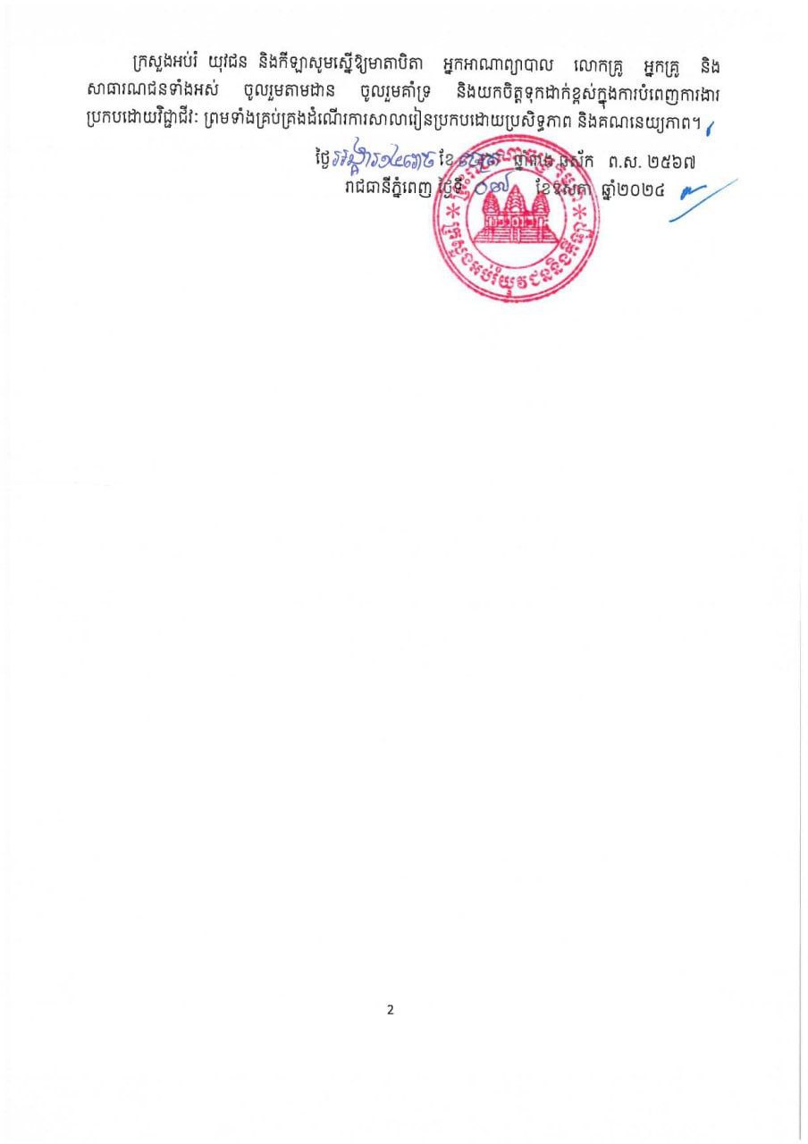 ខាងក្រោមនេះ ជាសេចក្ដីថ្លែងការណ៍ របស់ក្រសួងអប់រំ៖