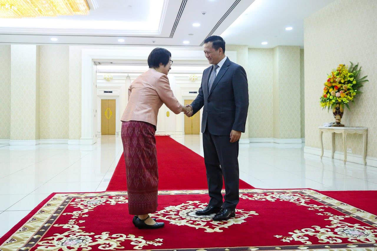 សម្តេចធិបតី ហ៊ុន ម៉ាណែត បានស្វាគមន៍ចំពោះលោកស្រី Chihoko Asada-Miyakawa និងសហការី ដែលបានអញ្ជើញមកបំពេញទស្សនកិច្ចនៅកម្ពុជា និងបានថ្លែងអំណរគុណអង្គការ ILO ចំពោះការរួមចំណែកដល់ការអភិវឌ្ឍសង្គម-សេដ្ឋកិច្ចកម្ពុជានាពេលកន្លងមក។