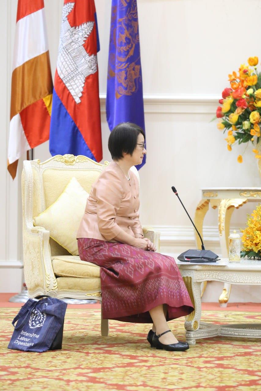 សម្តេចធិបតី ក៏បានវាយតម្លៃខ្ពស់ចំពោះការប្តេជ្ញាចិត្តរបស់លោកស្រីក្នុងការបន្តគាំទ្រ និងចូលរួមចំណែកអភិវឌ្ឍសង្គម-សេដ្ឋកិច្ចកម្ពុជា។ សម្តេចធិបតី បានសម្តែងការគាំទ្រចំពោះកម្មវិធីដែលមានស្រាប់របស់ ILO នៅកម្ពុជា និងលើកទឹកចិត្តឱ្យ ILO បន្តគាំទ្រដល់វិស័យការងារនៅកម្ពុជាបន្ថែមទៀត ជាពិសេសការកសាងមូលធនមនុស្សឱ្យឆ្លើយតបទៅនឹងតម្រូវការជាក់ស្តែងរបស់ទីផ្សារ តាមរយៈការកសាងសមត្ថភាពឱ្យមានជំនាញខ្ពស់ និងជំនាញប្រកបដោយភាពបត់បែន ដើម្បីចូលរួមចំណែកក្នុងការសម្រេចបាននូវគោលដៅរបស់កម្ពុជាក្នុងឆ្នាំ២០៥០ ក្លាយជាប្រទេសដែលមានចំណូលខ្ពស់។