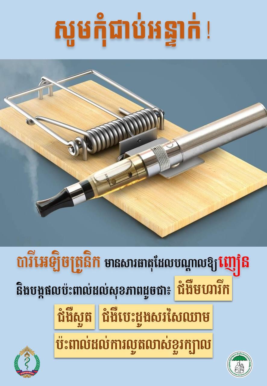 ក្រសួងសុខាភិបាល ក៏បានធ្វើការក្រើនរំលឹកដល់សាធារណជន ជាពិសេស យុវវ័យ ក្នុងការចូលរួមទប់ស្កាត់ការប្រើប្រាស់បារីអេឡិចត្រូនិក (E-cigarettes) ព្រោះបារីអេឡិចត្រូនិក មានសារធាតុនីកូទីន និងសារធាតុគ្រោះថ្នាក់ជាច្រើនទៀត ដែលធ្វើឱ្យមានគ្រោះថ្នាក់ដល់សុខភាពអ្នកប្រើប្រាស់។ បារីអេឡិចត្រូនិក ឬវេប គឺជាឧបករណ៍ដែលប្រើប្រាស់ថាមពលថ្ម បង្កើតជាកម្តៅដុតអង្គធាតុរាវ ដើម្បីបង្កើតជាចំហាយសម្រាប់ជក់ ឬបឺត ដែលចំហាយចេញពីបារីអេឡិចត្រូនិក មានសារធាតុដែលមានគ្រោះថ្នាក់ ដូចជា៖