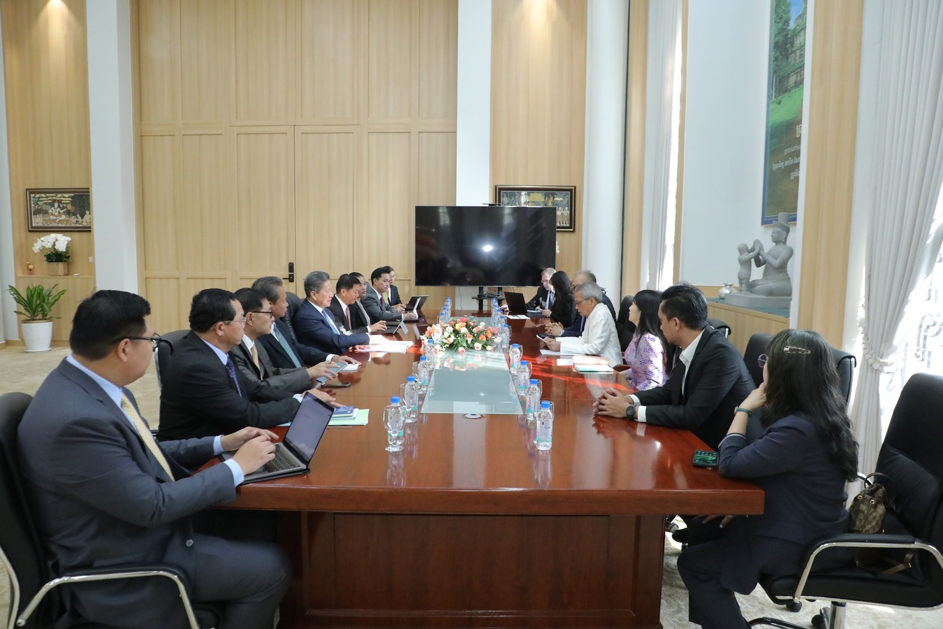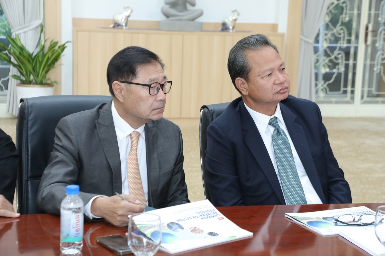 ក្នុងជំនួបពិភាក្សានាឱកាសនេះ ក្រុមហ៊ុនកូរ៉េ HYUCKJIN ENERGY PLANT ENGINEERING បានធ្វើបទបង្ហាញជូនឯកឧត្តមឧបនាយករដ្ឋមន្ត្រី អំពីព័ត៌មានបឋមនៃគម្រោងស្នើសុំវិនិយោគរបស់ក្រុមហ៊ុនលើការផលិតថាមពលអគ្គិសនី តាមរយៈការកែច្នៃសំរាម ព្រមទាំងបានឆ្លៀតឱកាសនេះដើម្បីស្នើសុំគោលការណ៍ណែនាំបន្ថែមពី ឯកឧត្តមឧបនាយករដ្ឋមន្ត្រី ចំពោះគម្រោងវិនិយោគរបស់ខ្លួន។