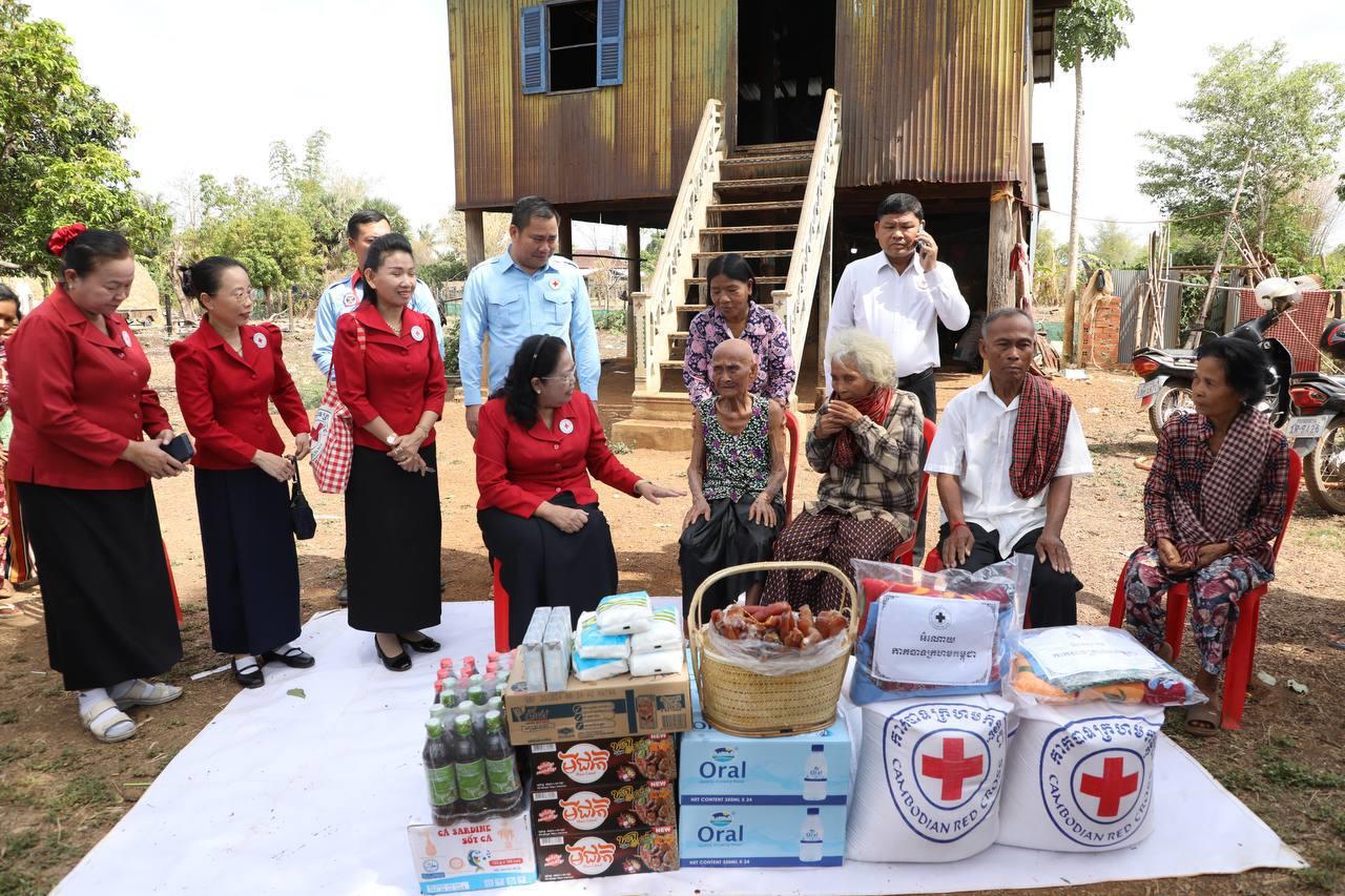 លោកស្រីបន្ដថា «ថ្ងៃនេះយើងបានចុះមកដល់ផ្ទះលោកយាយ ឃើញថាលោកយាយពិតជារស់នៅក្នុងស្ថានភាពពិបាកពិតប្រាកដមែន សព្វថ្ងៃលោកយាយមានកូន៣នាក់ កូនស្រីដែលពិការភ្នែកនេះ ជាកូនស្រីច្បង និងកូននាក់ប្រុសស្រីទៀត ក៏មានស្ថានភាពគ្រួសារក្រលំបាកដែរ»។ ដូច្នេះក្នុងឱកាសចុះមកសួរសុខទុកផ្ទាល់នេះ ក៏ភ្ជាប់មកជាមួយនឹងអំណោយកាកបាទក្រហមកម្ពុជា ប្រគល់ជូនគ្រួសារលោកយាយ ដែរមានអង្ករ មី ត្រីខ ត្រីងៀត សាច់ក្រក ទឹកត្រី ទឹកស៊ីអ៊ីវ ទឹកដោះគោប្រអប់ ស្ករស ទឹកបរិសុទ្ធ មុង ភួយ សារុង ក្រមា និងថវិកា ១លានរៀល។