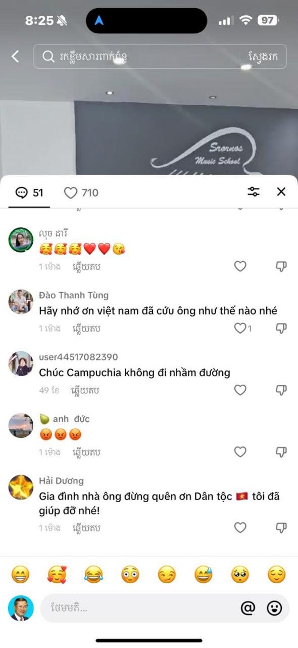 កាលពីថ្ងៃទី១៩ ខែឧសភា ឆ្នាំ២០២៤កន្លងទៅនេះ សម្តេចតេជោ ហ៊ុន សែន បានប្រតិកម្មជាខ្លាំងទៅលើការបញ្ចេញមតិមួយចំនួនជាភាសាវៀតណាម ដែលមានអត្ថន័យ និងខ្លឹមសារមិនសមរម្យនលើ TikTok របស់សម្តេច។