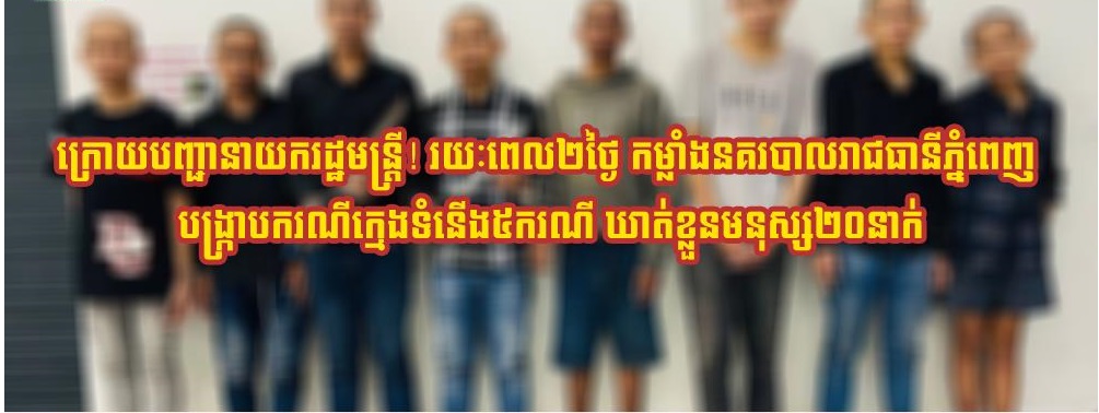 ក្រោយបញ្ជានាយករដ្ឋមន្ដ្រី! រយៈពេល២ថ្ងៃ កម្លាំងនគរបាលរាជធានីភ្នំពេញ បង្ក្រាបករណីក្មេងទំនើង៥ករណី ឃាត់ខ្លួនមនុស្ស២០នាក់