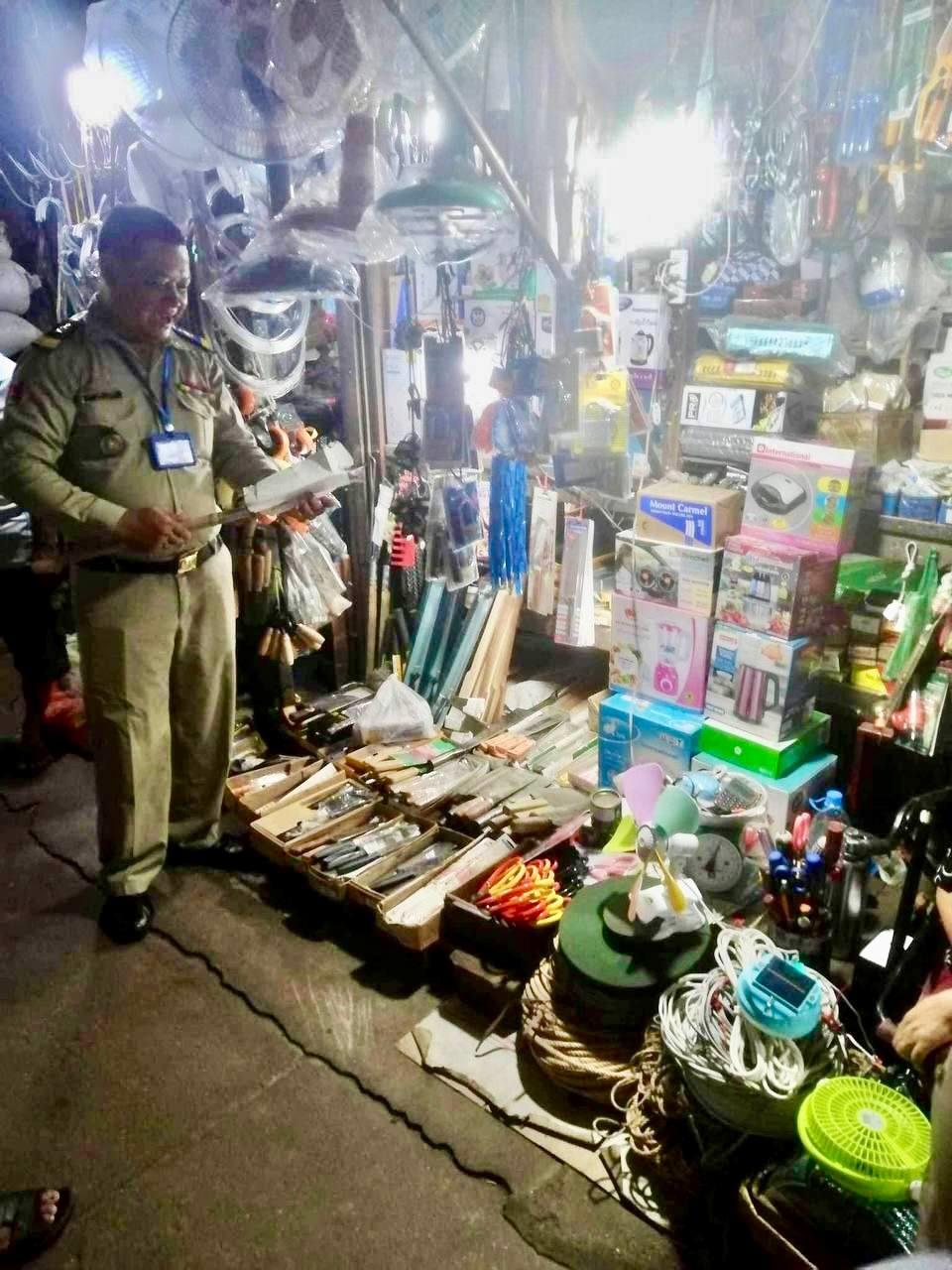 (ភ្នំពេញ)៖ អនុវត្តន៍តាមបទបញ្ជាដ៏ម៉ឺងម៉ាត់របស់ឧត្តមសេនីយ៍ឯក ជួន ណារិន្ទ អគ្គស្នងការរង និងជាស្នងការនគរបាលរាជធានីភ្នំពេញ នៅរសៀលថ្ងៃទី២៨ ខែឧសភា ឆ្នាំ២០២៤ លោកឧត្តមសេនីយ៍ទោ ពិត បញ្ញា ស្នងការរងទទួលផែនការងារនគរបាលប្រឆាំងបទល្មើសសេដ្ឋកិច្ច ដឹកកម្លាំងការិយាល័យនគរបាលប្រឆាំងបទល្មើសសេដ្ឋកិច្ច ចុះសហការជាមួយគណៈកម្មការផ្សារដើម​គរ និងផ្សារអូរឡាំពិក ធ្វើការត្រួតពិនិត្យ អប់រំ ណែនាំ ដល់បណ្តាអាជីវករ ដែលលក់ដូរ កាំបិត និងដាវកែច្នៃផ្សេងៗ។