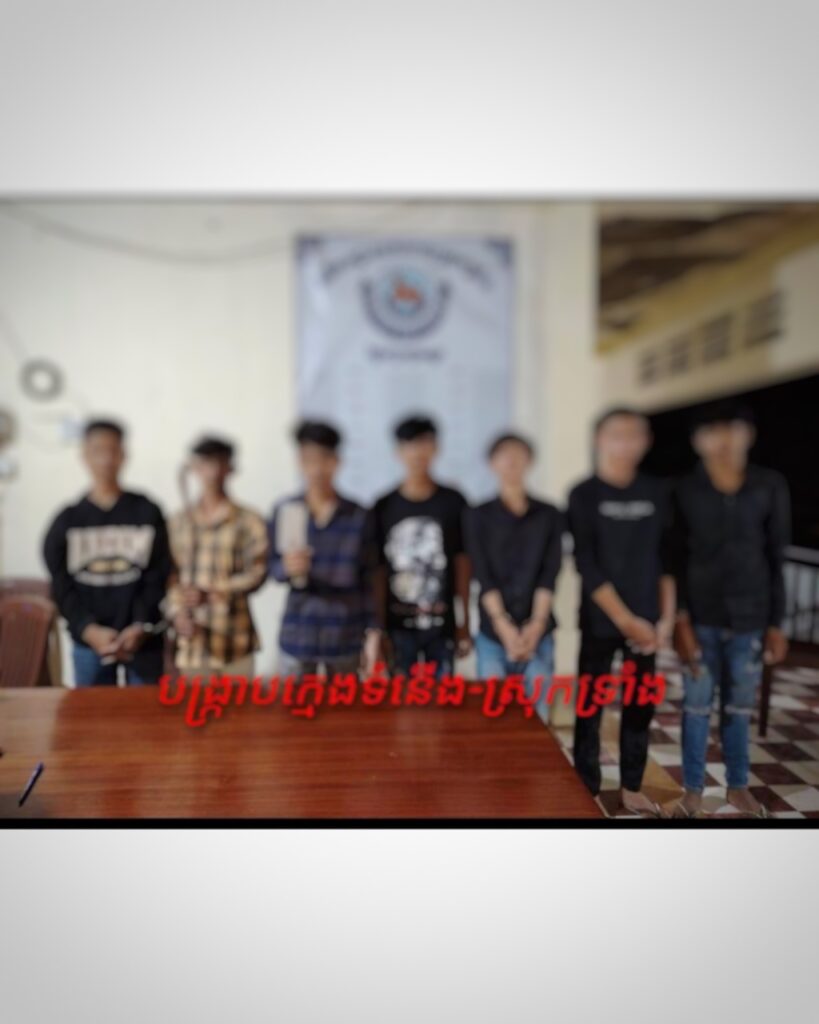 ក្នុងករណីនេះសមត្ថកិច្ចបានត្រួតពិនិត្យឆែកឆេររកឃើញកាំបិតប៉័ងតោចំនួនមួយដើម និងកាំបិតក្រងង៉ុកចំនួនមួយដើម ដែលក្មេងទំនើងនេះបានយកតាមខ្លួននិងបានឃាត់ខ្លួនក្រុមក្មេងទំនើងទាំងនេះចំនួន៧នាក់។