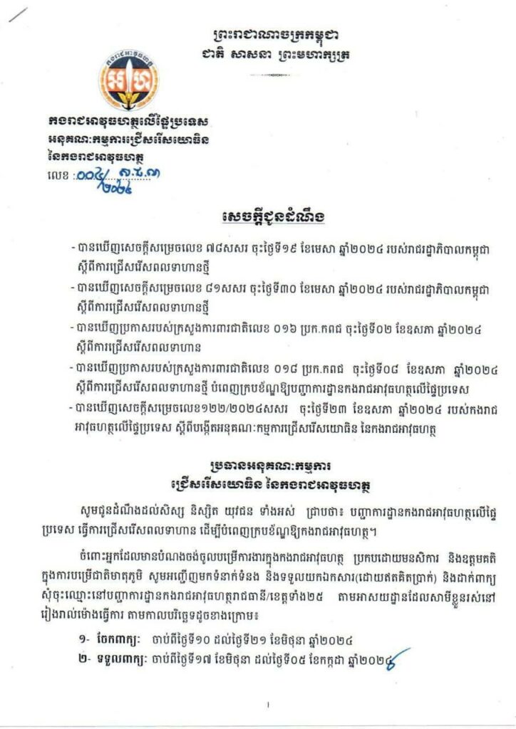 *ទទួលពាក្យ៖ ចាប់ពីថ្ងៃទី១៧ ខែមិថុនា ដល់ថ្ងៃទី០៥ ខែកក្កដា ឆ្នាំ២០២៤