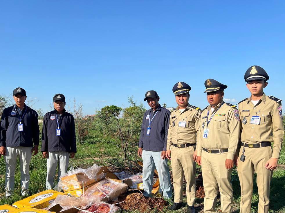 កម្លាំងនគរបាលរាជធានីភ្នំពេញ សហការជាមួយមន្រ្តី ក.ប.ប បង្រ្កាបសាច់បង្កកគ្មានសុវត្ថិភាពបង្កប៉ះពាល់សុខភាពអ្នកប្រើប្រាស់នាំចូលពីប្រទេសជិតសរុប២២០០គីឡូក្រាម