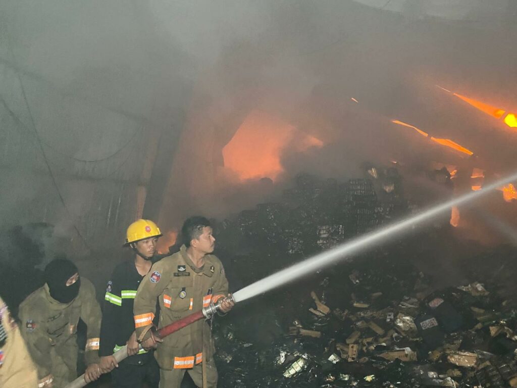 UPDATE: អគ្គិភ័យឆាបឆេះនៅឃ្លាំងស្តុបបារី មួយកន្លែង នៅខណ្ឌដង្កោ, សមត្ថកិច្ចប្រើប្រាស់ទឹក២០៥ឡាន
