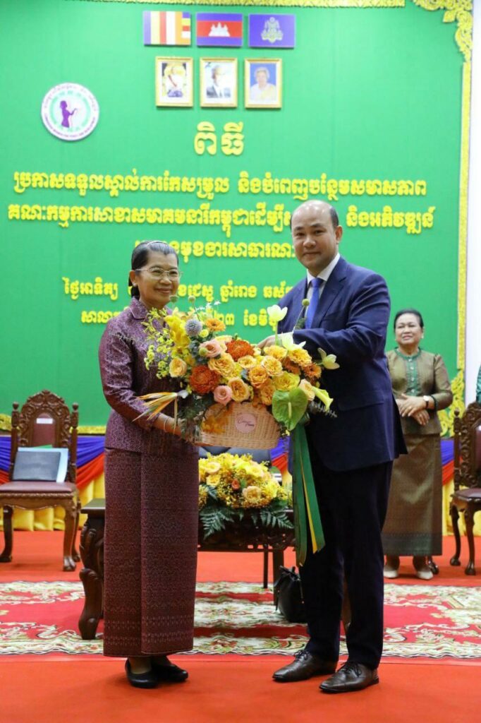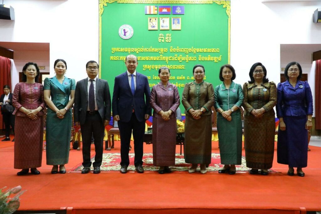 (ភ្នំពេញ)៖ សម្តេចកិត្តិសង្គហបណ្ឌិត ម៉ែន សំអន ឧត្តមប្រឹក្សាផ្ទាល់ព្រះមហាក្សត្រ និងជាប្រធានសមាគមនារីកម្ពុជាដើម្បីសន្តិភាពនិងអភិវឌ្ឍន៍ បានអញ្ជើញប្រកាសទទួលស្គាល់ការកែសម្រួល និងបំពេញបន្ថែមសមាសភាពគណៈកម្មការសាខាសមាគមនារីកម្ពុជាដើម្បីសន្តិភាពនិងអភិវឌ្ឍន៍ នៃក្រសួងមុខងារសាធារណៈ។