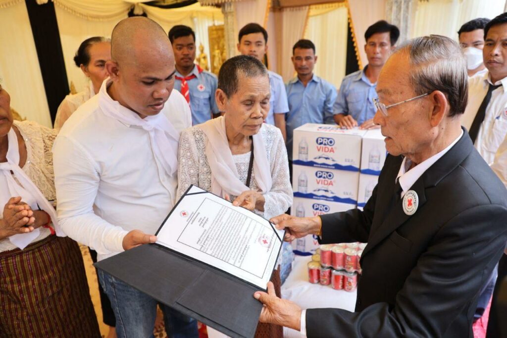 (ភ្នំពេញ)៖ លោកយាយ តាត់ ឆេន ភរិយាព្រឹទ្ធចារ្យកោសលវោហារ គង់ ណៃ រំជួលចិត្ដហូរទឹកភ្នែក ថ្លែងអំណរគុណសម្ដេចកិត្ដិព្រឹទ្ធបណ្ឌិត ប៊ុន រ៉ានី ហ៊ុនសែន ប្រធានកាកបាទក្រហមកម្ពុជា បន្ទាប់ពីសម្ដេចបានបន្ដចាត់សហការី ចូលរួមរំលែកទុក្ខ ចំពោះមរណភាពរបស់ស្វាមីលោកយាយផ្ទាល់ដល់គេហដ្ឋាន នៅថ្ងៃទី២៩ ខែមិថុនា ឆ្នាំ២០២៤។