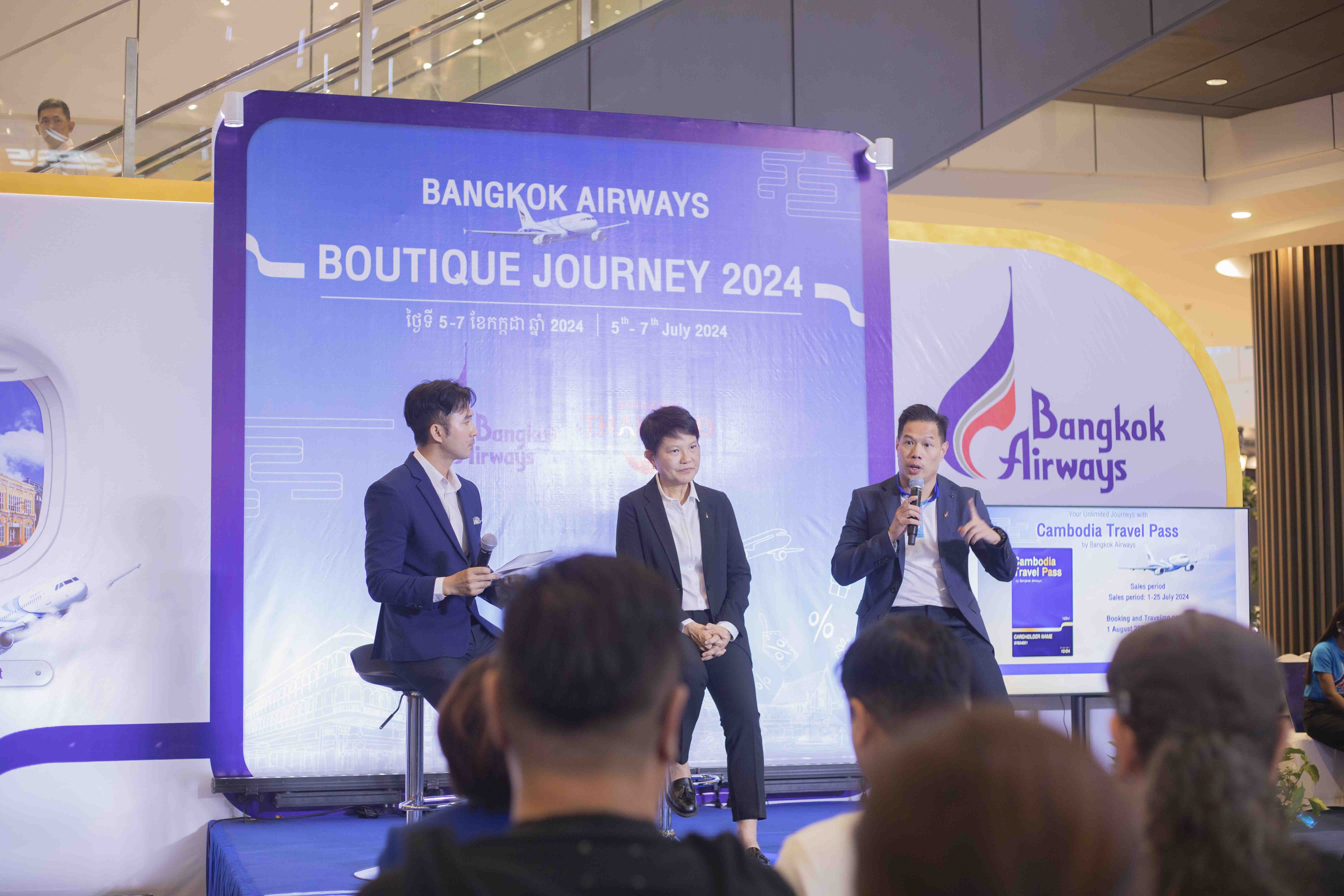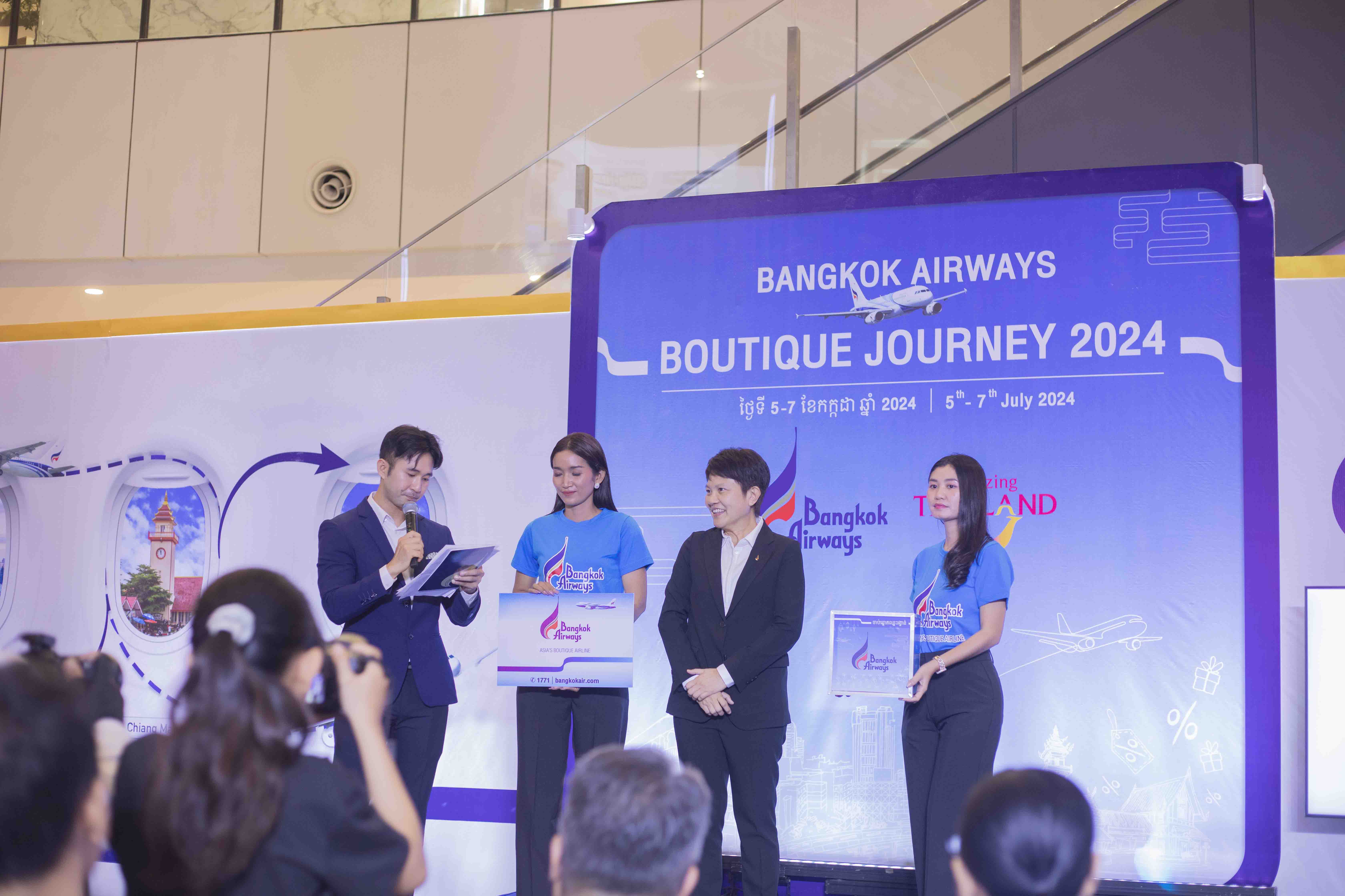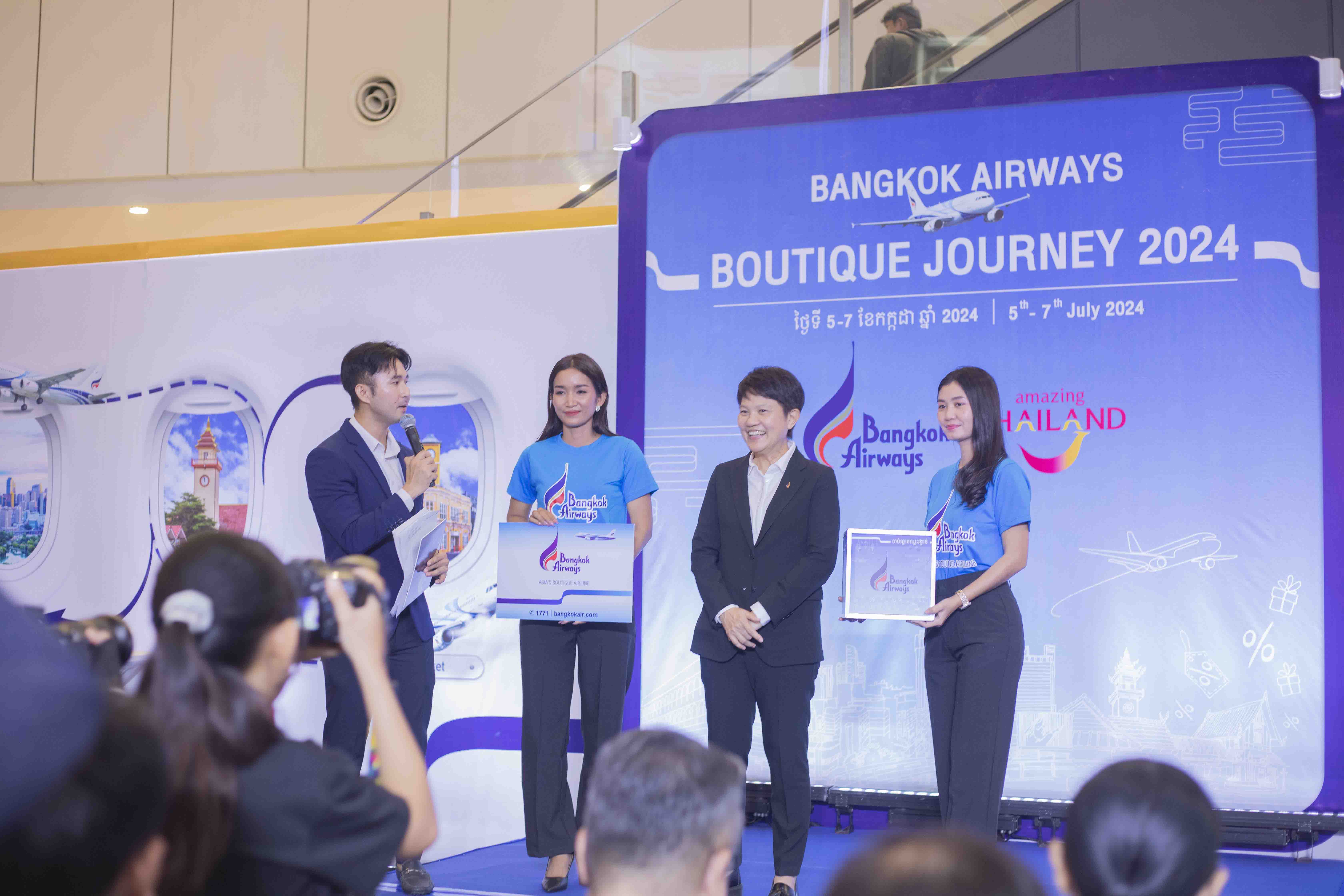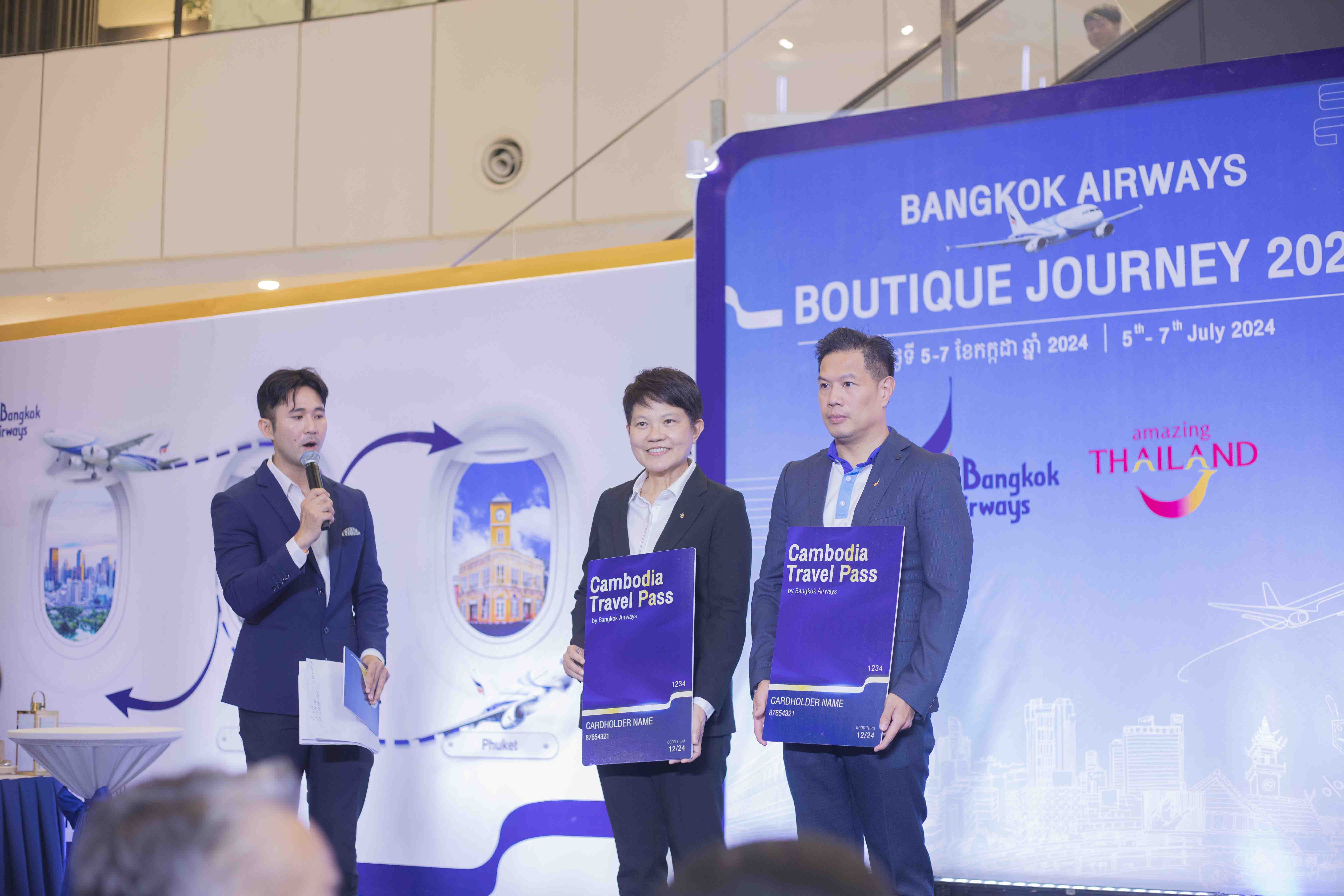 (រាជធានីភ្នំពេញ – ថ្ងៃទី០៥ កក្កដា ២០២៤) ៖ ក្រុមហ៊ុនបាងកក អ៊ែរវេយ៍ ដឹកនាំដោយអ្នកនាង អាម៉នរ៉ាត គង់សាវ៉ាត ដែលជាអនុប្រធានផ្នែកលក់ និងអនុប្រធានស្តីទីផ្នែកទីផ្សារ សហការជាមួយអាជ្ញាធរទេសចរណ៍ថៃ ដឹកនាំដោយ អ្នកនាង ស៊ូប៉ាកាន យ៉ូដឈុន ដែលជានាយកគ្រប់គ្រង មានមោទនភាពប្រកាសបើកពិព័រណ៌ទេសចរណ៍ “Boutique Journey Travel Fair” និងបង្ហាញបណ្ណ Cambodia Travel Pass។ ពិធីសម្ពោធជាផ្លូវការត្រូវបានរៀបចំឡើងនៅ Central Court ក្នុងផ្សារទំនើបអ៊ីអន 2។