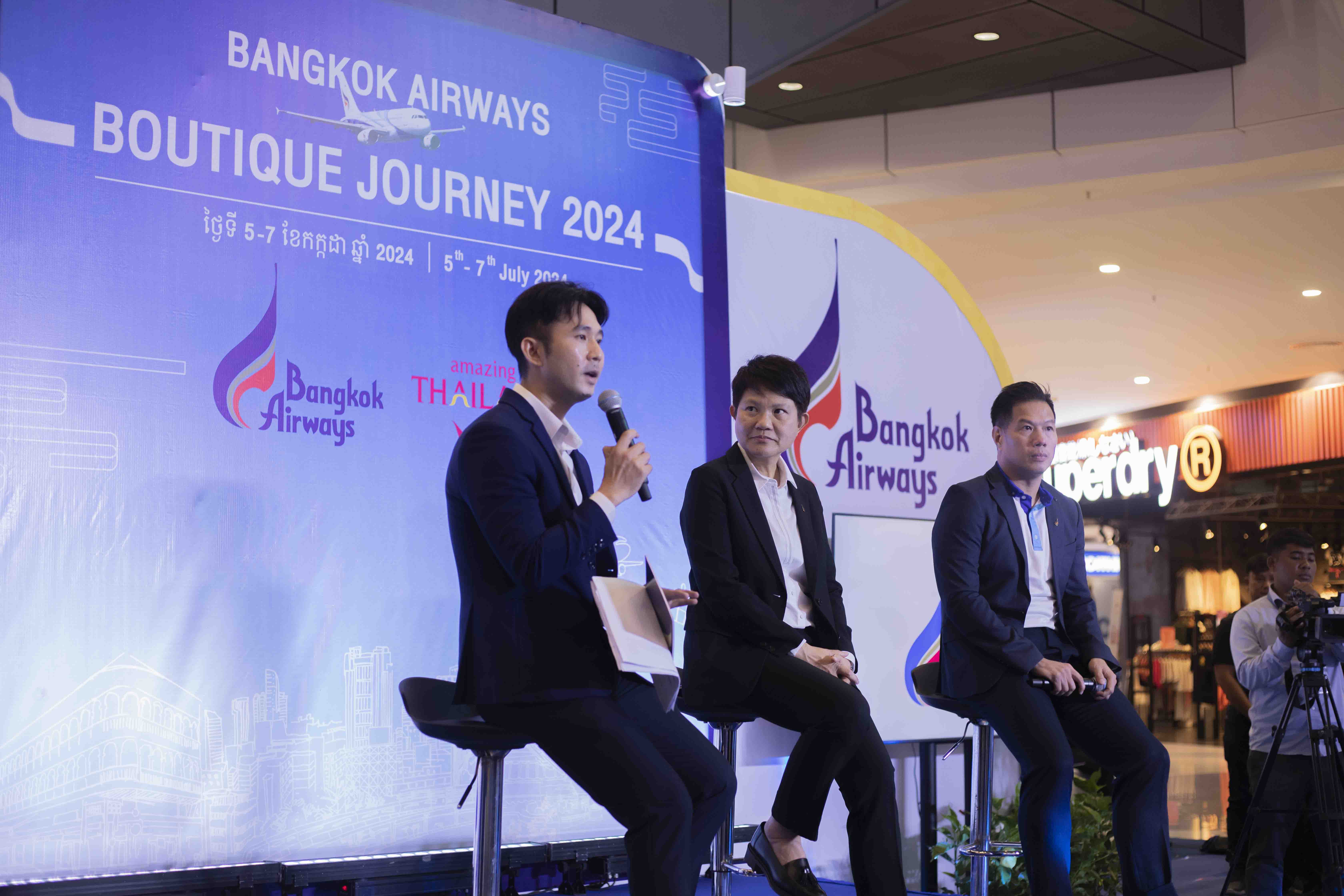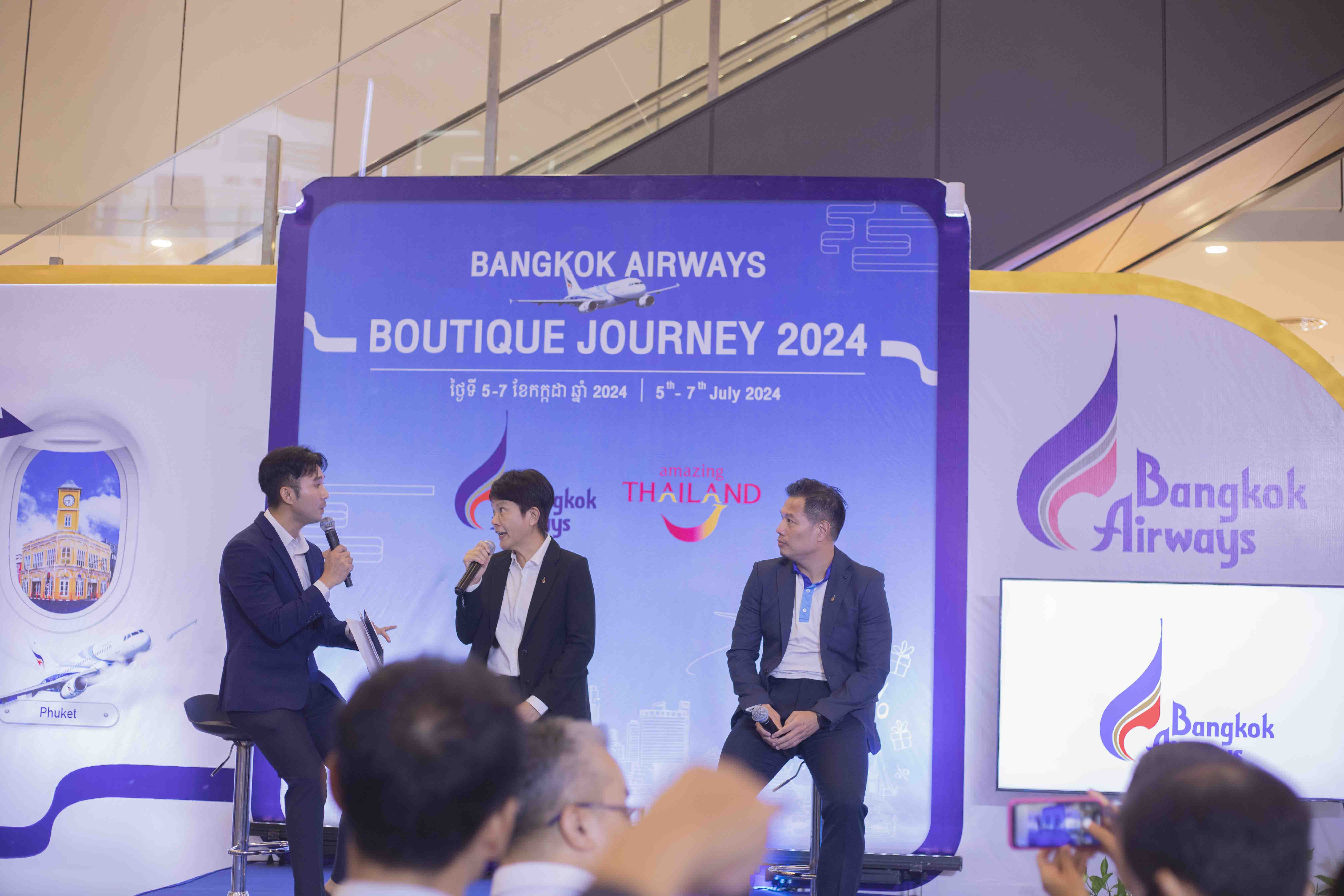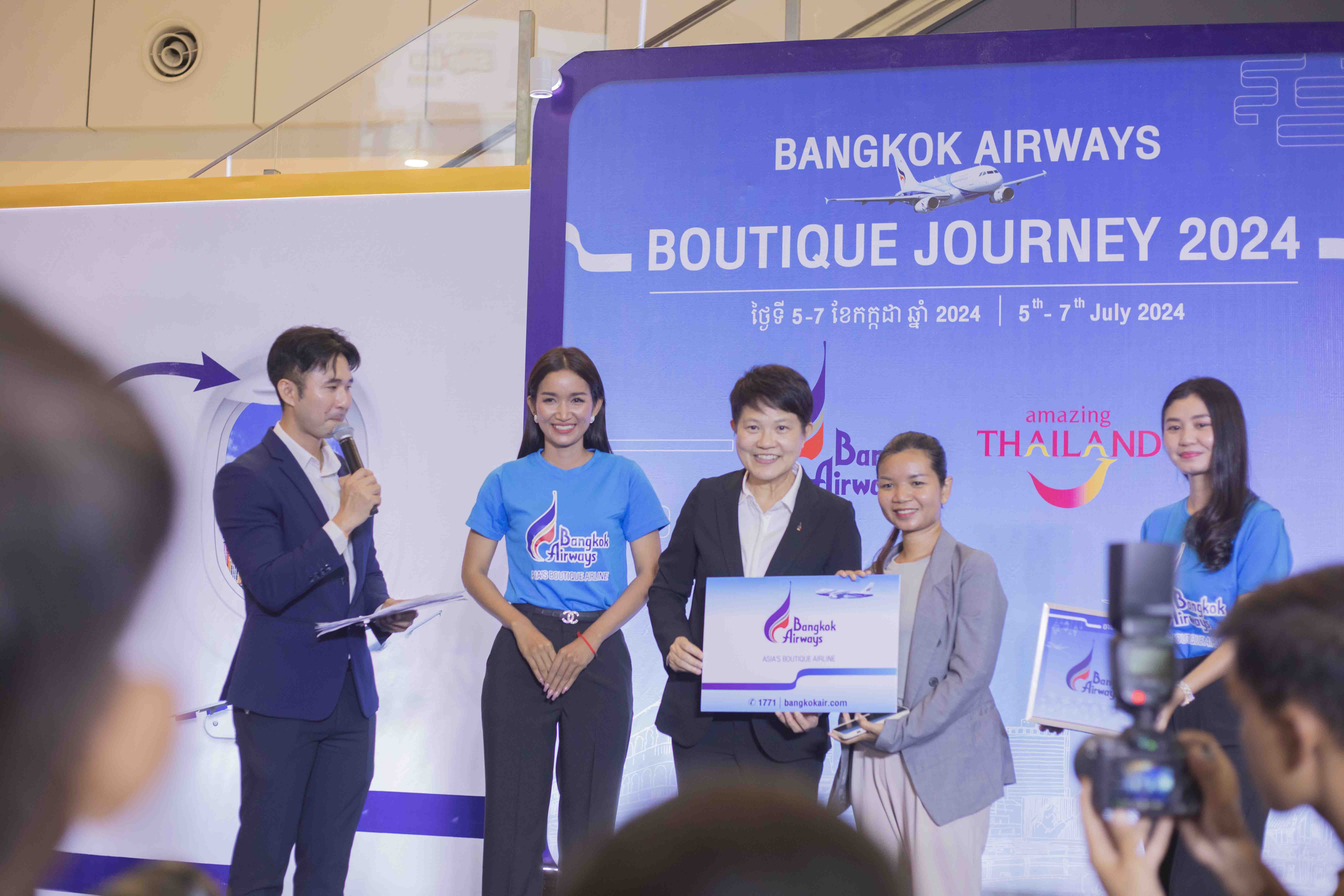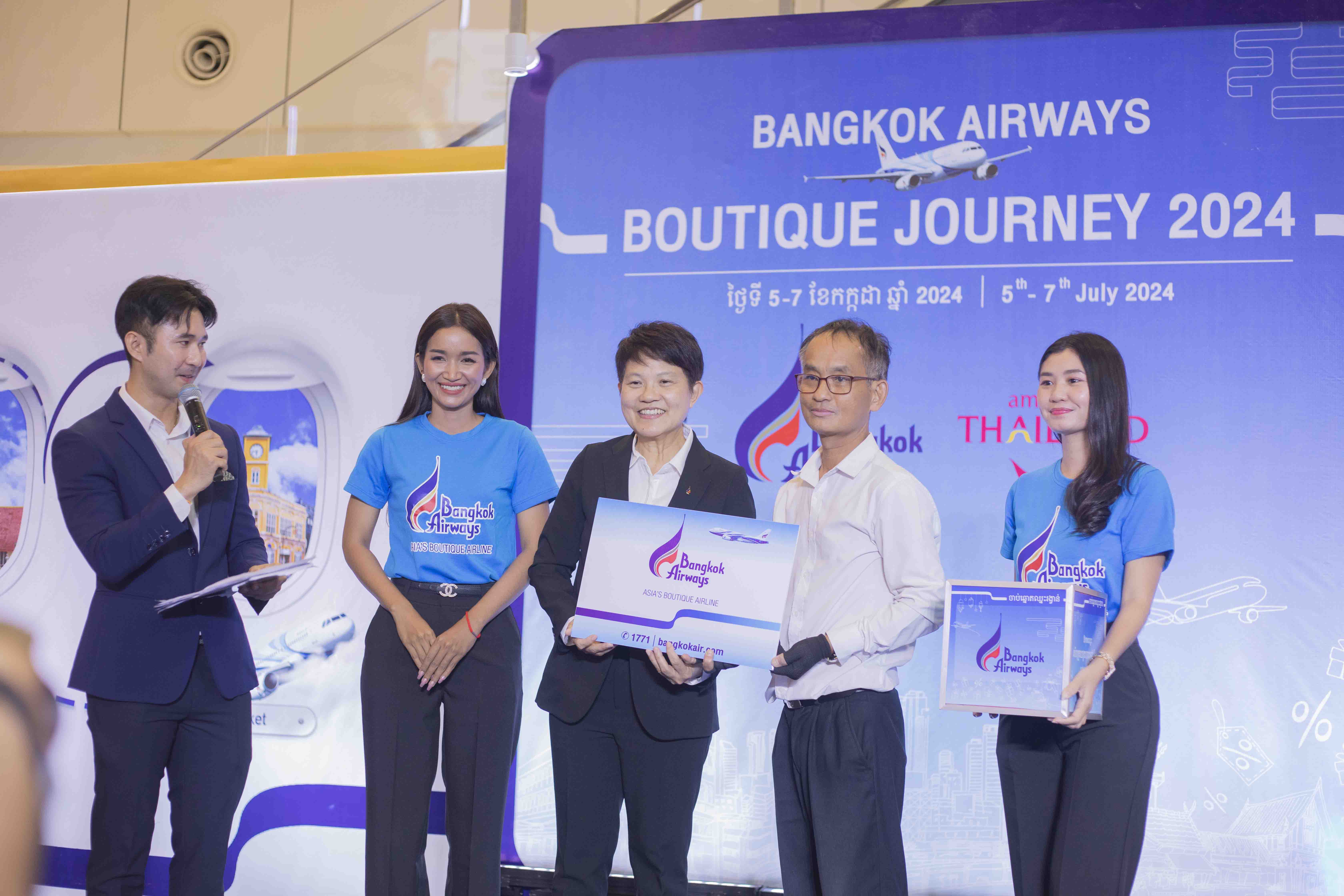 (រាជធានីភ្នំពេញ – ថ្ងៃទី០៥ កក្កដា ២០២៤) ៖ ក្រុមហ៊ុនបាងកក អ៊ែរវេយ៍ ដឹកនាំដោយអ្នកនាង អាម៉នរ៉ាត គង់សាវ៉ាត ដែលជាអនុប្រធានផ្នែកលក់ និងអនុប្រធានស្តីទីផ្នែកទីផ្សារ សហការជាមួយអាជ្ញាធរទេសចរណ៍ថៃ ដឹកនាំដោយ អ្នកនាង ស៊ូប៉ាកាន យ៉ូដឈុន ដែលជានាយកគ្រប់គ្រង មានមោទនភាពប្រកាសបើកពិព័រណ៌ទេសចរណ៍ “Boutique Journey Travel Fair” និងបង្ហាញបណ្ណ Cambodia Travel Pass។ ពិធីសម្ពោធជាផ្លូវការត្រូវបានរៀបចំឡើងនៅ Central Court ក្នុងផ្សារទំនើបអ៊ីអន 2។