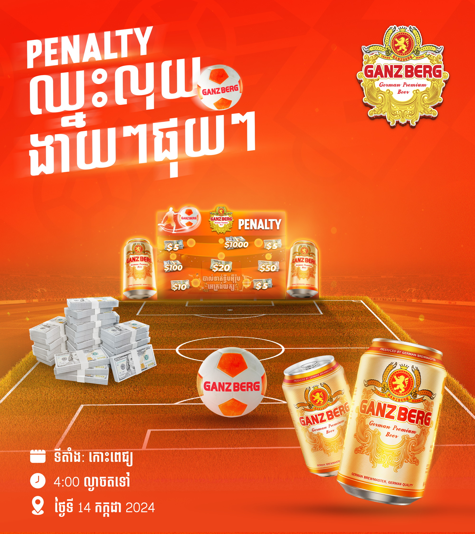 GANZBERG អេក្រង់យក្ស CONCERT នឹងប្រព្រឹត្តិទៅនៅថ្ងៃទី១៤ ខែកក្តដា ឆ្នាំ២០២៤ នៅមុខសាលមហោស្រពកោះពេជ្រ រាជធានីភ្នំពេញ ចាប់ពីម៉ោង ៥ ល្ងាច រហូតដល់ ៥ ព្រឹក៕