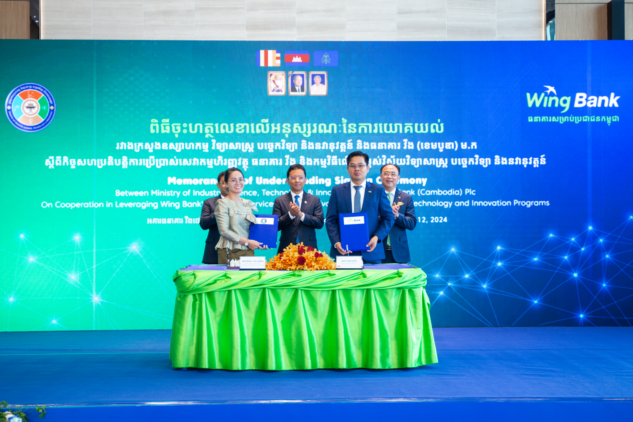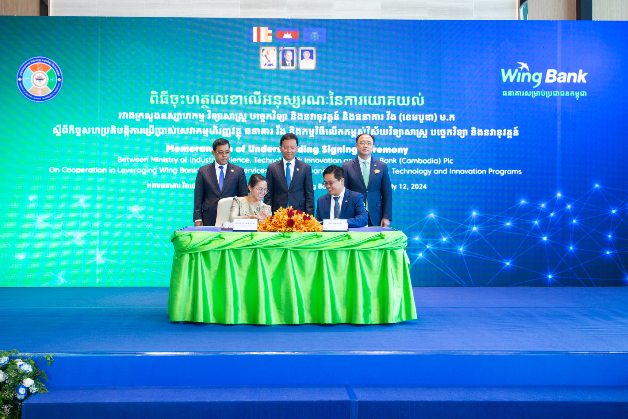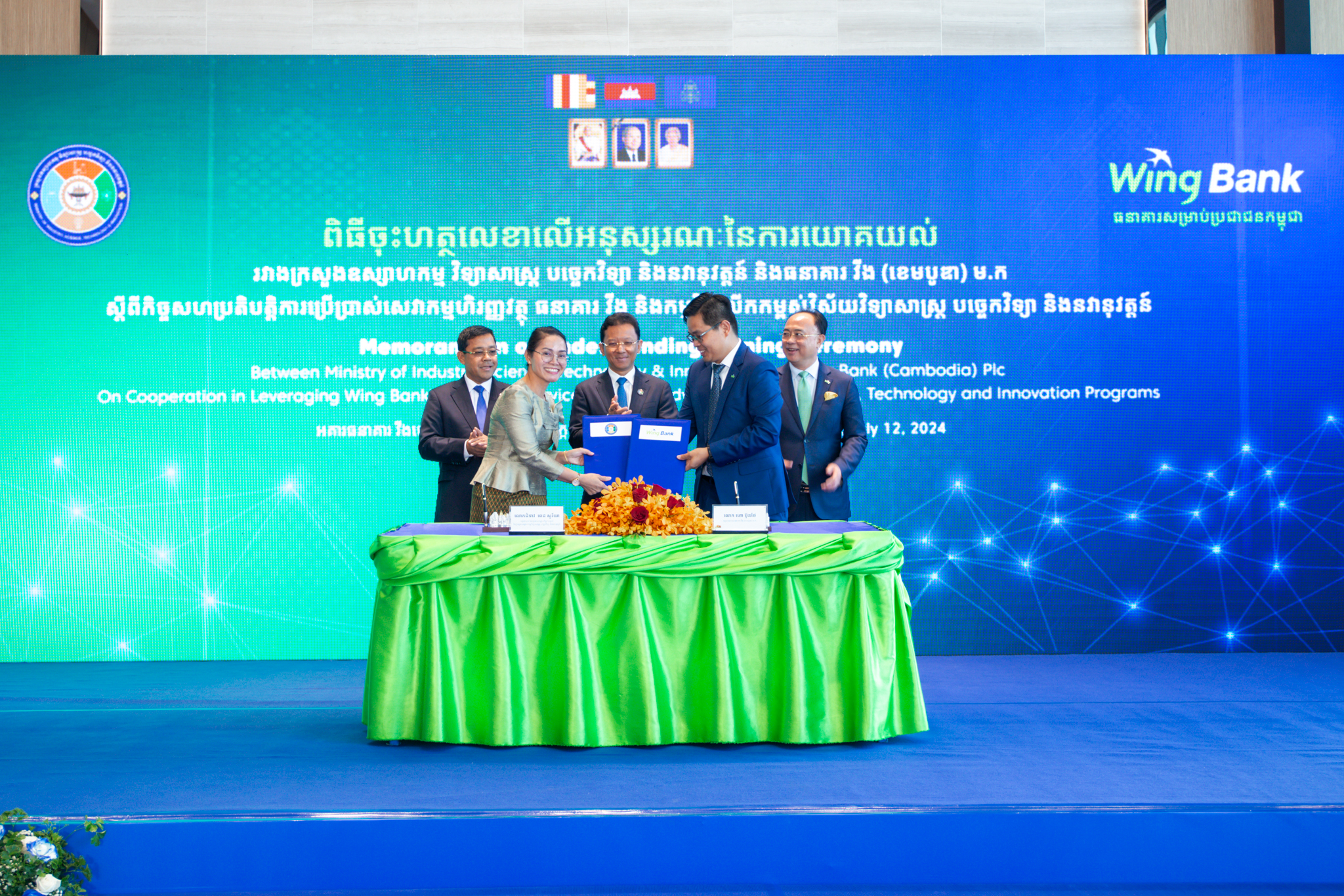 ភ្នំពេញ ថ្ងៃទី ១២ ខែកក្កដា ឆ្នាំ ២០២៤៖ ក្រសួងឧស្សាហកម្ម វិទ្យាសាស្រ្ត បច្ចេកវិទ្យា និងនវានុវត្តន៍ បានរៀបចំពិធីចុះហត្ថលេខា លើអនុស្សរណៈនៃការយោគយល់ ជាមួយធនាគារ វីង (ខេមបូឌា) ម.ក ដើម្បីប្រើប្រាស់ដំណោះស្រាយទូទាត់ឌីជីថលដ៏ទំនើបរបស់ធនាគារ វីង សម្រាប់ការបង់ថ្លៃកម្រៃសេវាសាធារណៈ ក៏ដូចជាលើកកម្ពស់វិស័យវិទ្យាសាស្ត្រ បច្ចេកវិទ្យា និងនវានុវត្តន៍ នៅក្នុងប្រទេសកម្ពុជា។