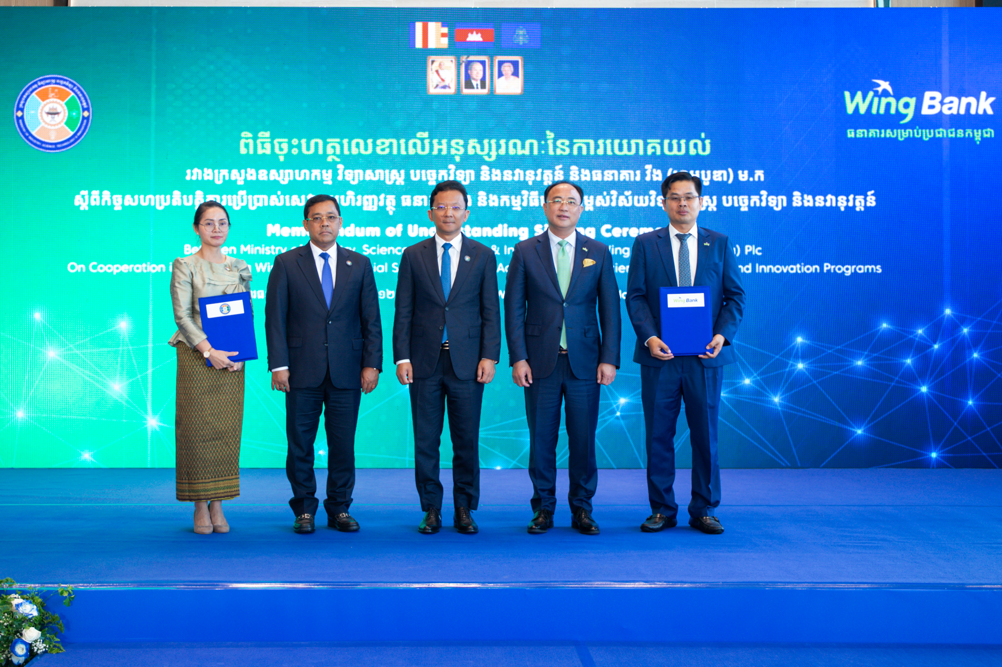 ពិធីចុះហត្ថលេខាលើអនុស្សរណៈនៃការយោគយល់នេះ ត្រូវបានរៀបចំធ្វើឡើងក្រោមអធិបតីភាព ឯកឧត្តម ហែម វណ្ណឌី រដ្ឋមន្ត្រីក្រសួងឧស្សាហកម្ម វិទ្យាសាស្រ្ត បច្ចេកវិទ្យា និងនវានុវត្តន៍ និងអ្នកឧកញ៉ា គិត ម៉េង ប្រធានក្រុមប្រឹក្សាភិបាល ធនាគារ វីង និងជាអគ្គនាយកក្រុមហ៊ុនរ៉ូយ៉ាល់គ្រុប។