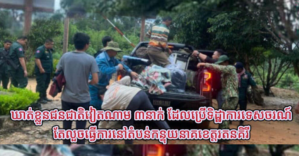 ឃាត់ខ្លួនជនជាតិវៀតណាម ៣នាក់ ដែលប្រើទិដ្ឋាការទេសចរណ៍ តែលួចធ្វើការនៅតំបន់កន្ទុយនាគខេត្តរតនគិរី