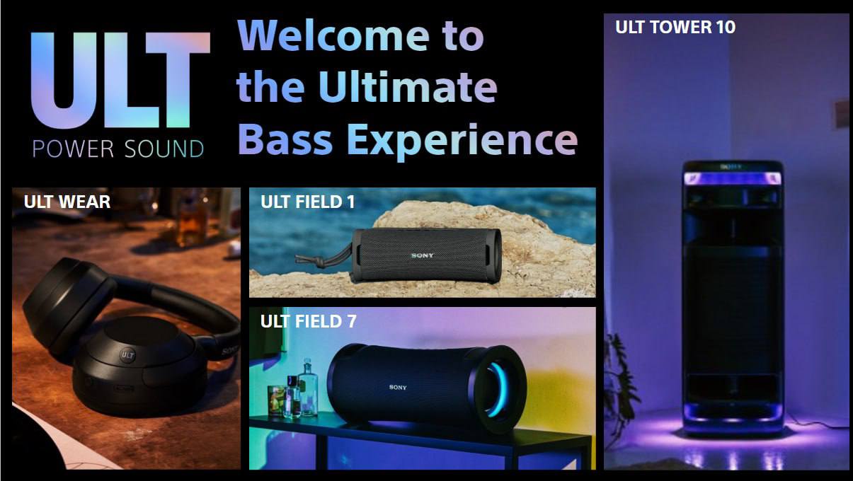 ឧបករណ៍បំពងសំឡេង ឬនិយមហៅខ្លីថា បាស សម្រាប់អ្នកចូលចិត្តបណ្ដែតអារម្មណ៍តាមរយៈដូរតន្ត្រី ចម្រៀងឮៗគុណភាពសំឡេងខ្ពស់ ក្នុងបរិយាកាសជួបជុំ ឬកម្មវិធីកម្សាន្តនានាជាក្រុម Sony ប្រកាស Wireless Speaker ខ្លួនដល់ទៅ ៣ជម្រើសតាមទំហំនិងតម្រូវការ ដូចជា ULT TOWER 10, ULT FIELD 7, ULT FIELD 1 និងកាសប្លូធូសឥតខ្សែ (wireless headphone) សម្រាប់អ្នកស្រឡាញ់ និយមស្ដាប់ចម្រៀងបែបឯកជន ឬបំពេញការងារនានា ម៉ូដែល ULT WEAR។