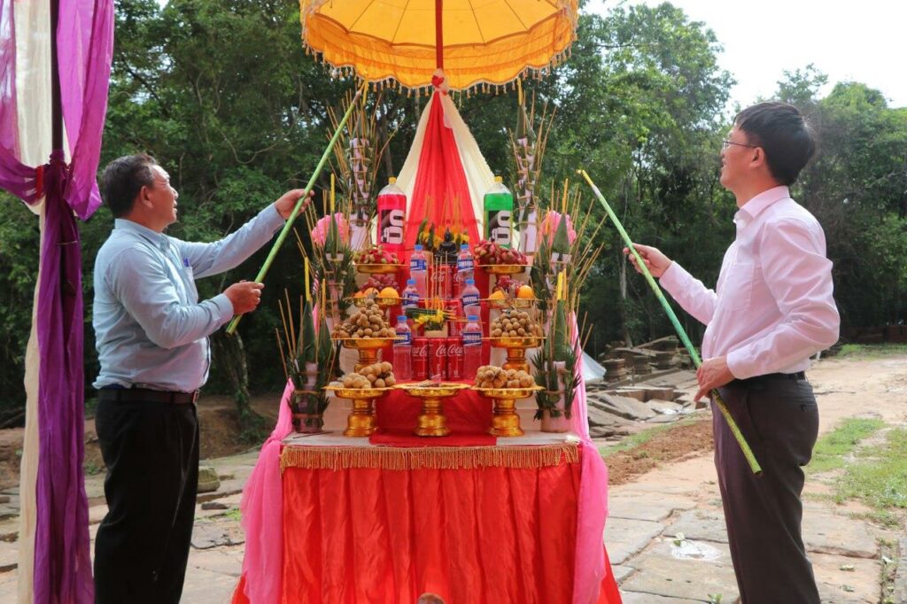 ក្នុងពិធីប្រុងពលីបើកការដ្ឋានជួសជុល មានការអញ្ជើញក្រោមអធិបតីភាពលោក គឹម សុធិន អគ្គនាយករងអាជ្ញាធរជាតិអប្សរា លោក Lu Qizhi អគ្គកុងស៊ុលនៃសាធារណរដ្ឋប្រជាមានិតចិនប្រចាំខេត្តសៀមរាប ប្រតិភូនៃក្រសួងវប្បធម៌ និងវិចិត្រសិល្បៈ ប្រតិភូក្រសួងការបរទេសនិងសហប្រតិបត្តិការអន្តរជាតិ អភិបាលស្រុកស្វាយលើ ប្រធាននាយកដ្ឋាន អនុប្រធាន អាជ្ញាធរមូលដ្ឋាន មន្ត្រី បុគ្គលិកនៃអាជ្ញាធរជាតិអប្សរា។