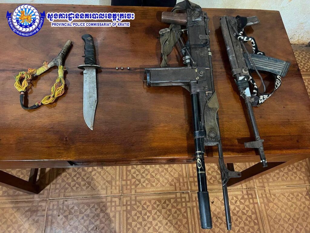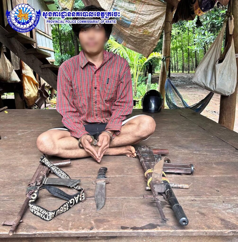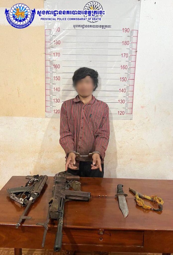 (ក្រចេះ)៖ កម្លាំងនគរបាលនៃអធិការដ្ឋាននគរបាលស្រុកស្នួល ខេត្តក្រចេះ បានឃាត់ខ្លួនបុរសម្នាក់ករណីកាន់កាប់ប្រើប្រាស់កែច្នៃដំឡើងអាវុធដោយគ្មានការអនុញ្ញាត និងដកហូតបានកាំភ្លើងចំនួន២ដើម នាថ្ងៃទី២១ ខែកក្កដា ឆ្នាំ២០២៤។